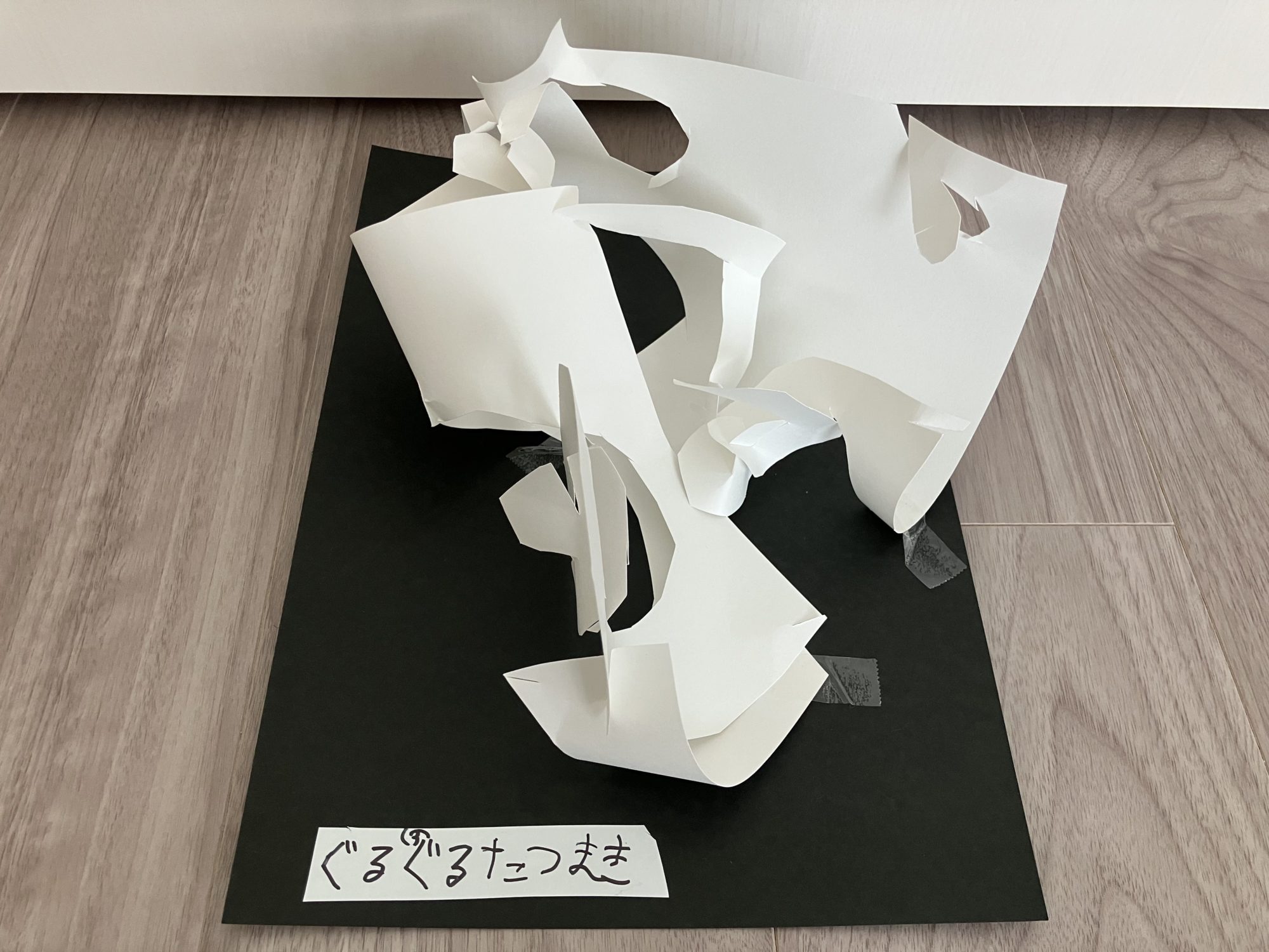 白い紙の曲がりやねじれがまるで風そのもので、空間を大きく使った立体の見せ方もとても印象的です。完成後に美術館のように飾りたくなる気持ち、よくわかります😊