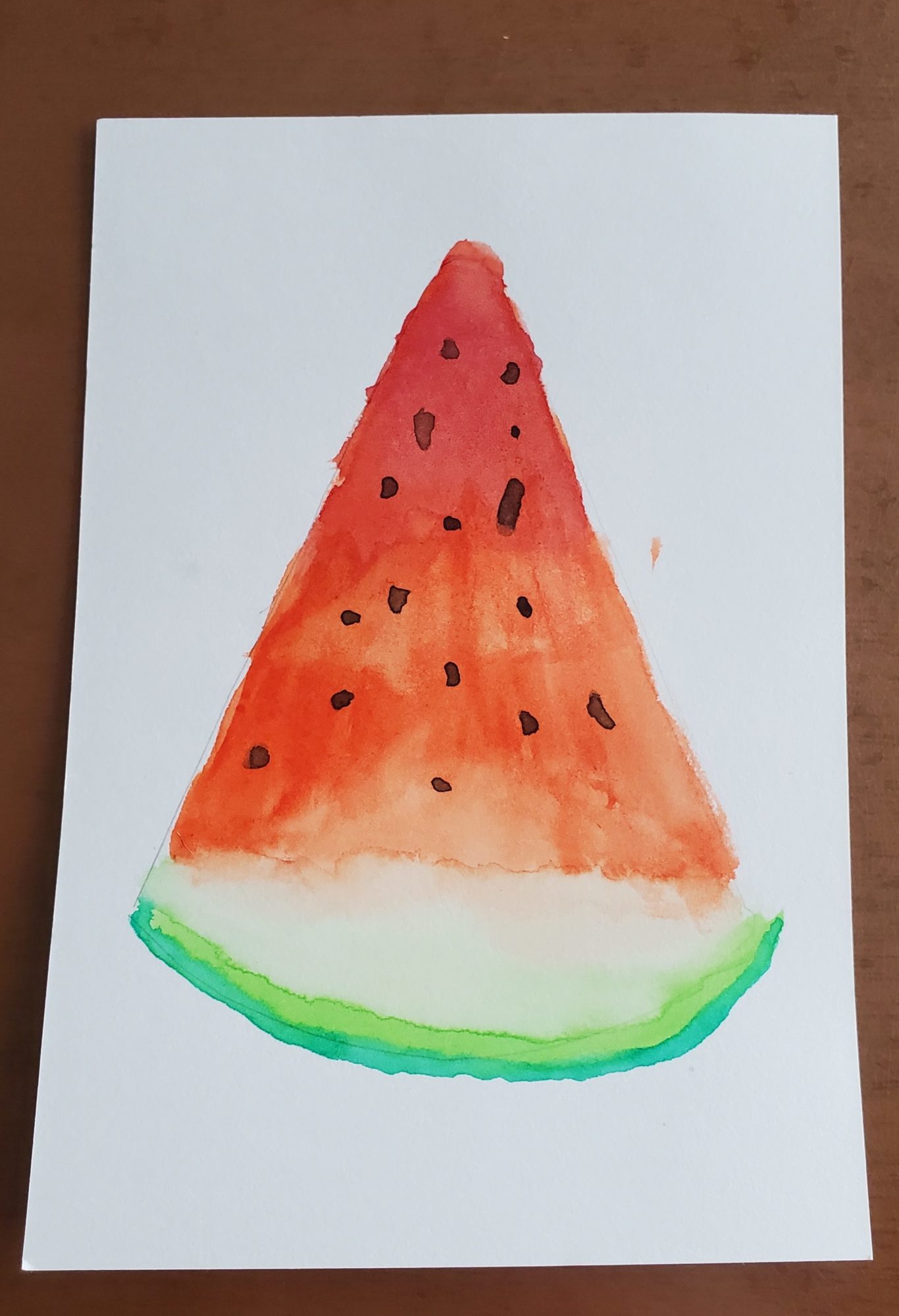スイカは透明水彩になれていなかったのもあって、そんなにうまくできなかった感じでした。😅