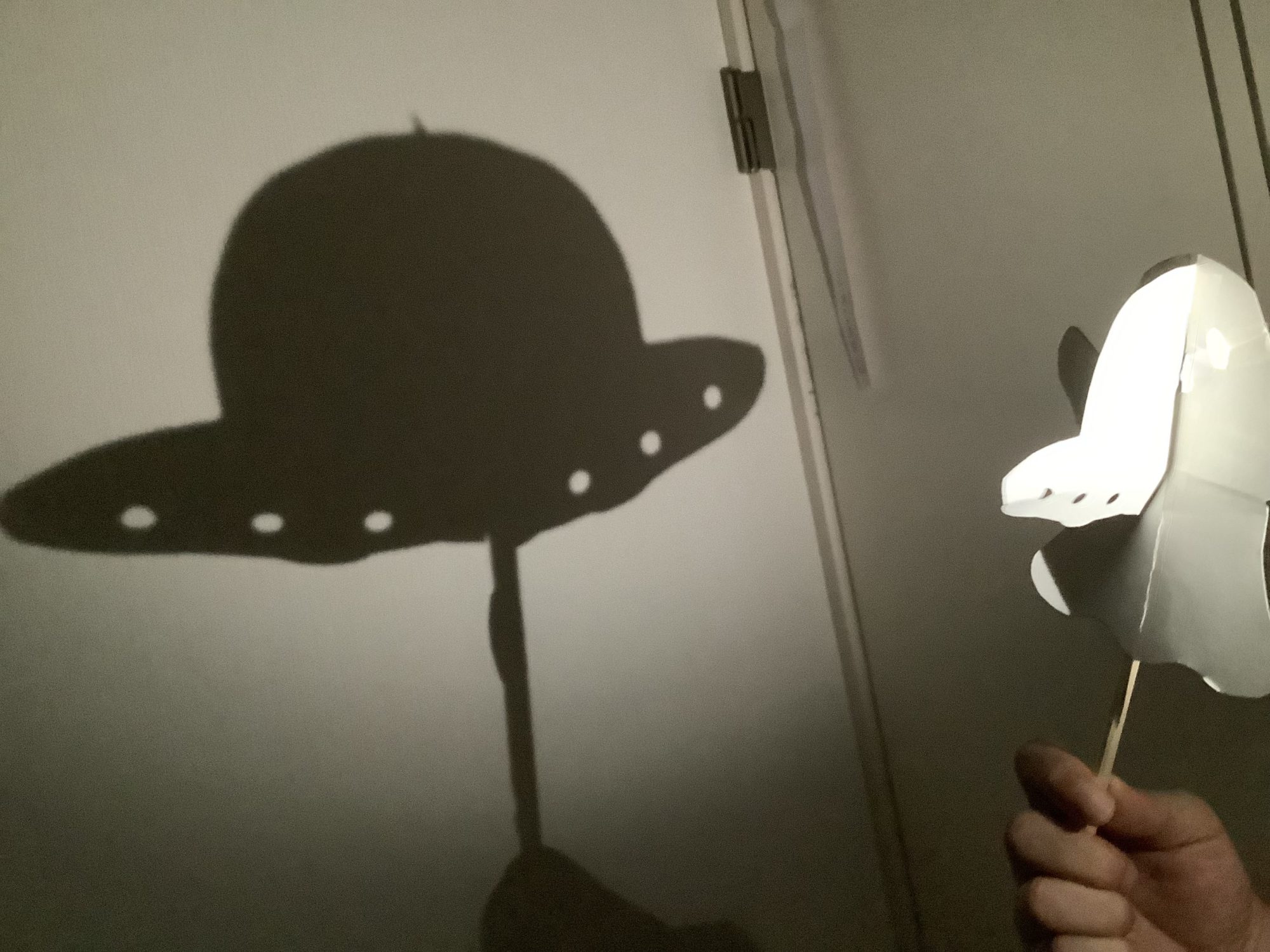 光と影のミラクルショー、すばらしいです!🌟 お化けやUFO、そしてチューリップの花へと、同じ素材が光のあて方で全く違う姿に変わる発想がとてもユニークですね。