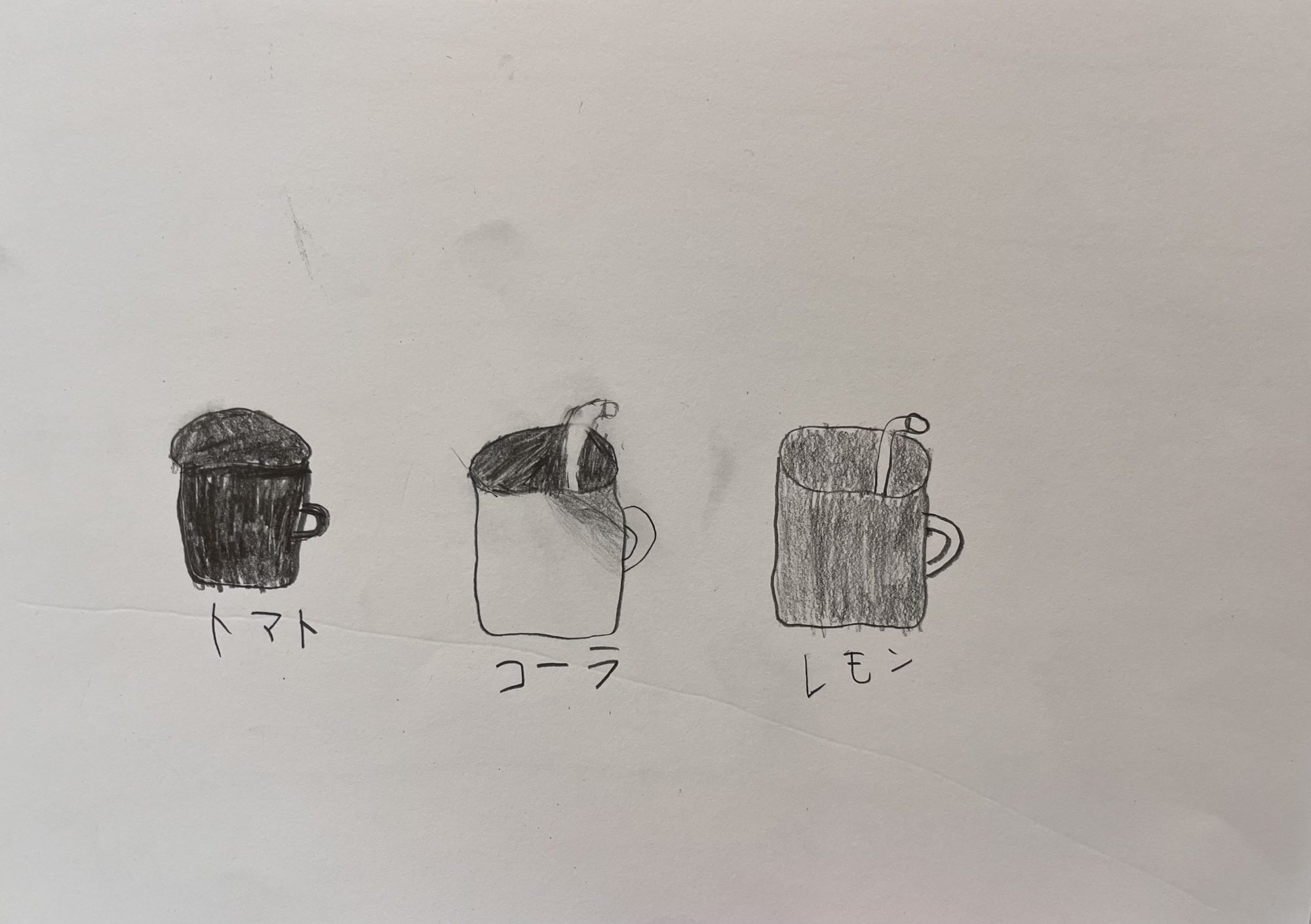 トマトジュース、コーラ、レモンジュース、それぞれの飲み物の違いを、熱心に観察してかいていましたね〜🥛