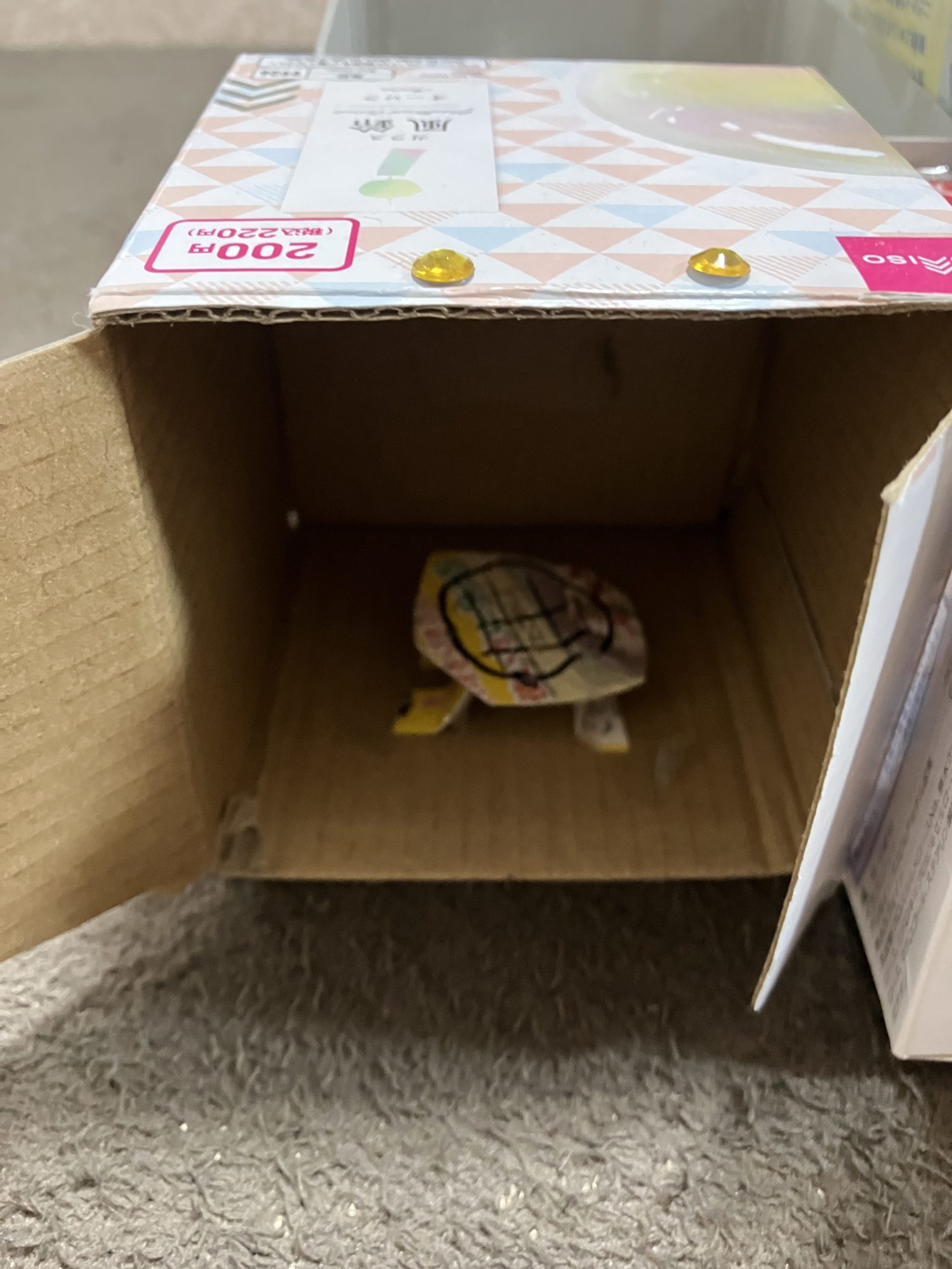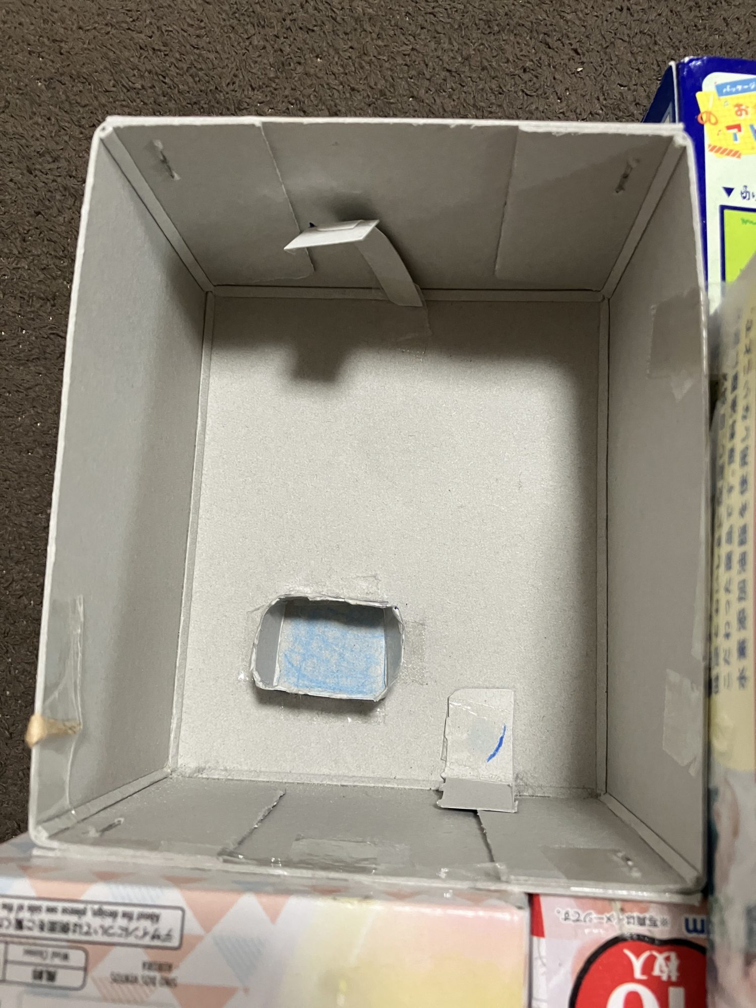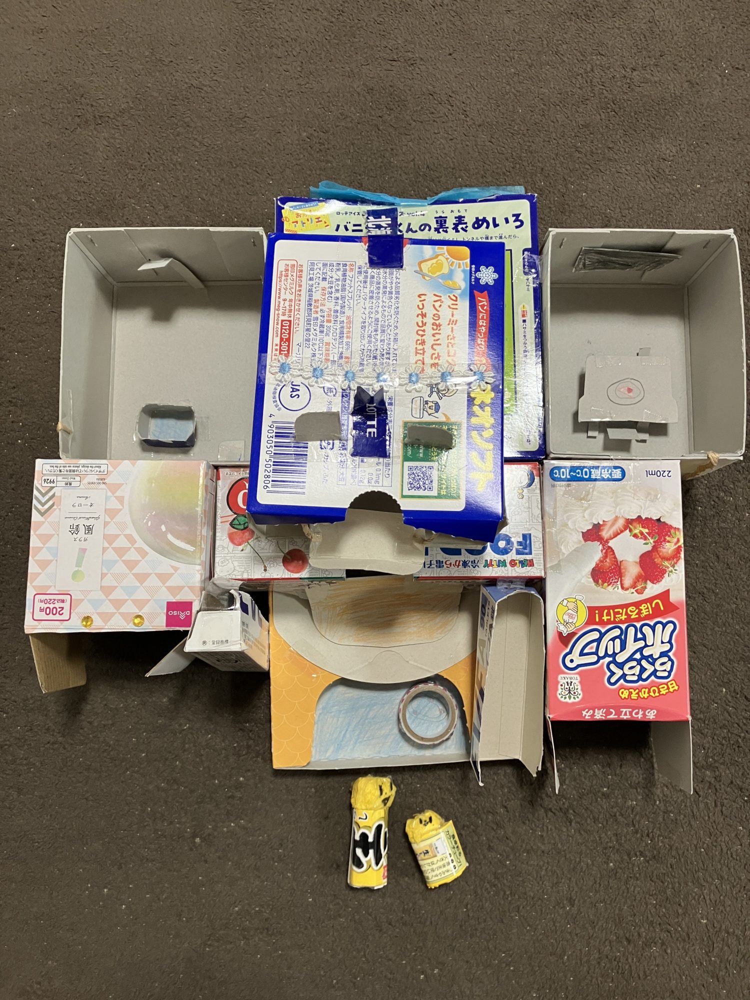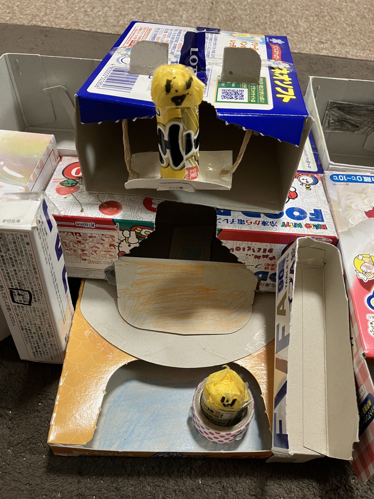 いろんなお菓子の箱が、新しい命をもらって立派なお家になっています。