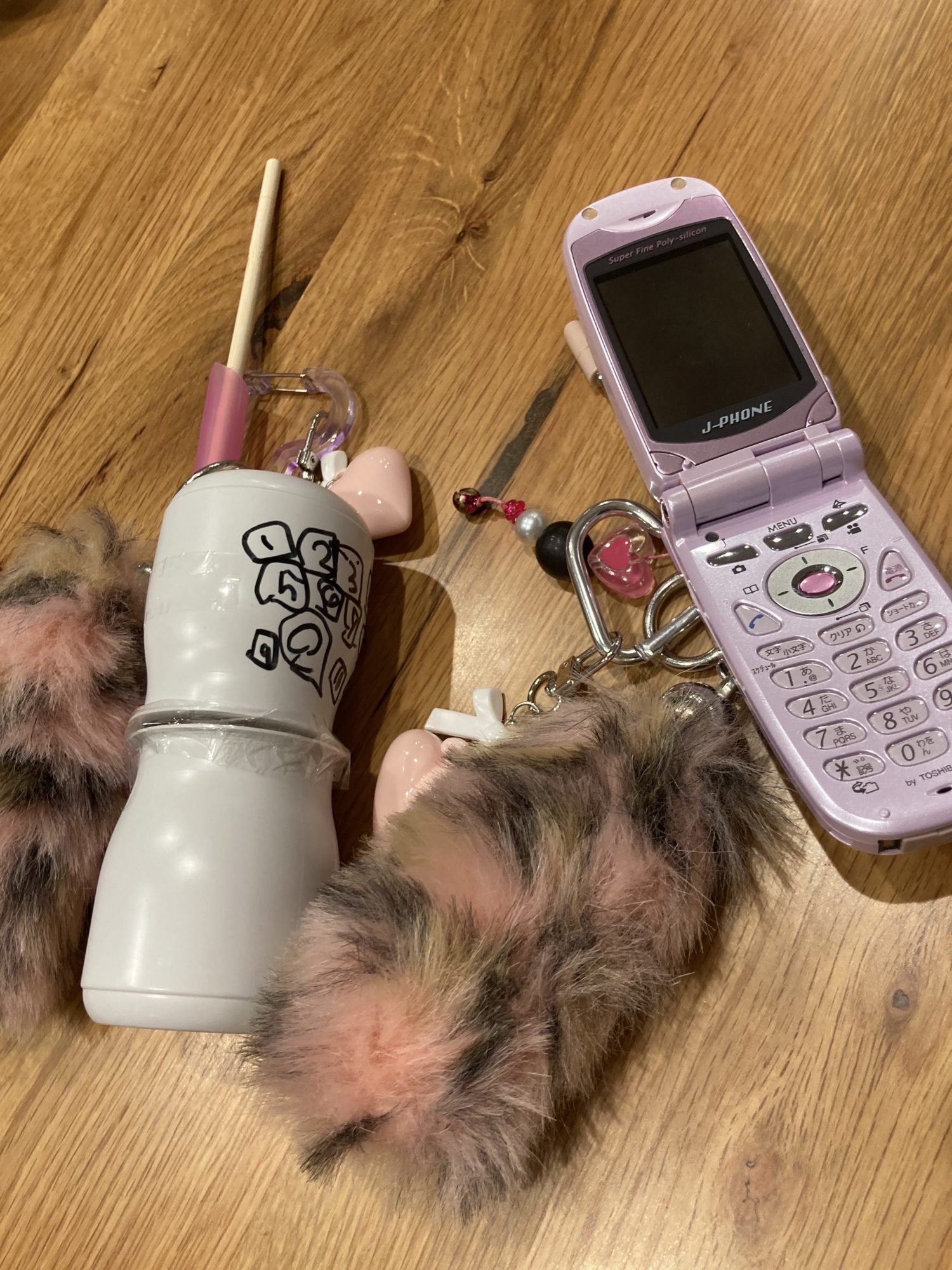 ストラップのふわふわや、ピンクの色づかいにもセンスがあって、本物のJ-PHONEと並べた写真には思わず笑顔になってしまいます。