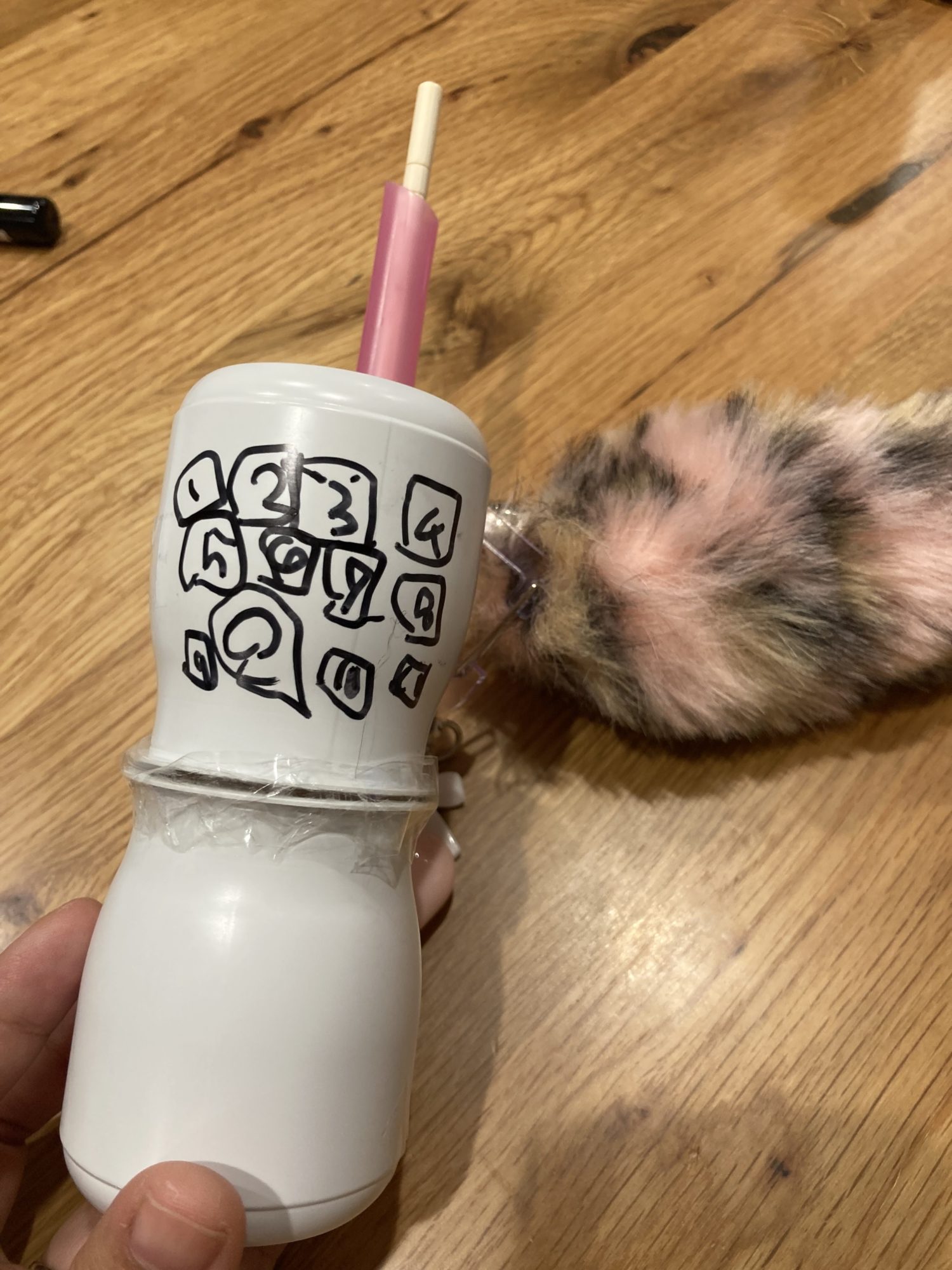 ガラケーを作りました、ストローと割り箸でアンテナを立たせて電話をしたりあそんでいます。
