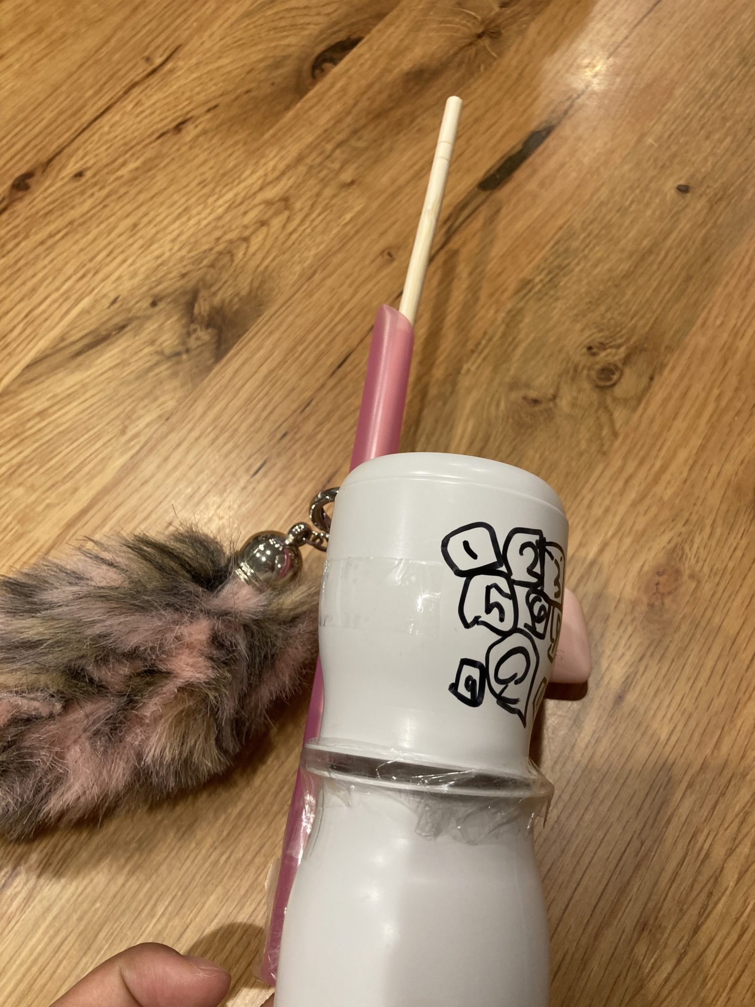 ストラップはもちろんふわふわのしっぽ。