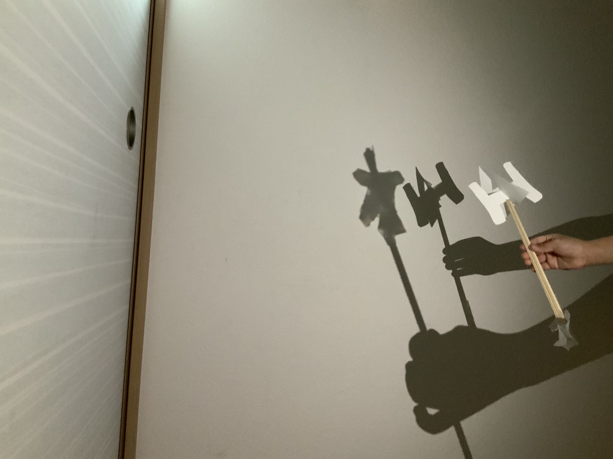 よく見ると…わりばしの、下の方にも影絵工作をつけてくれているね!
