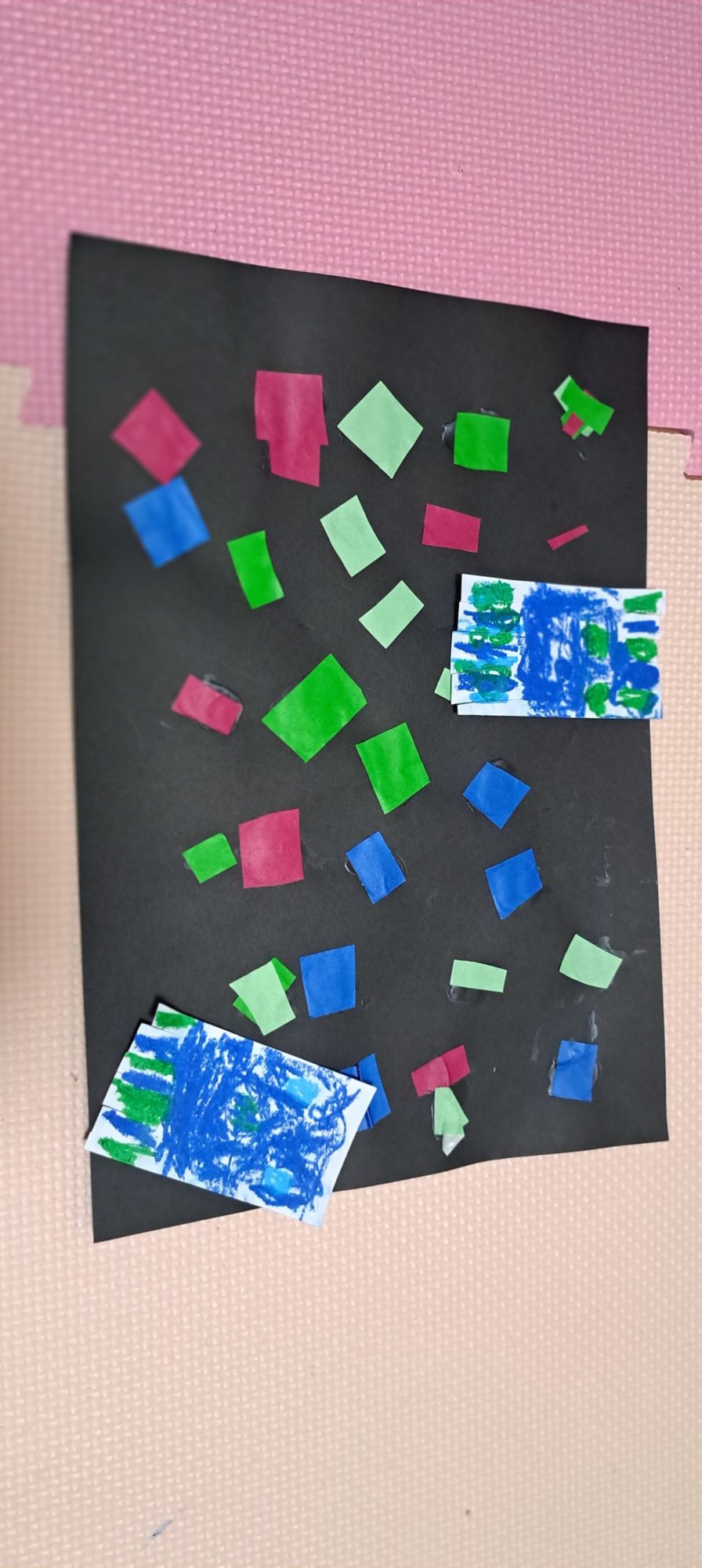 紙を「チョキチョキたくさん切った」という過程の中に、遊びのエネルギーがしっかり詰まっていてすてきです。