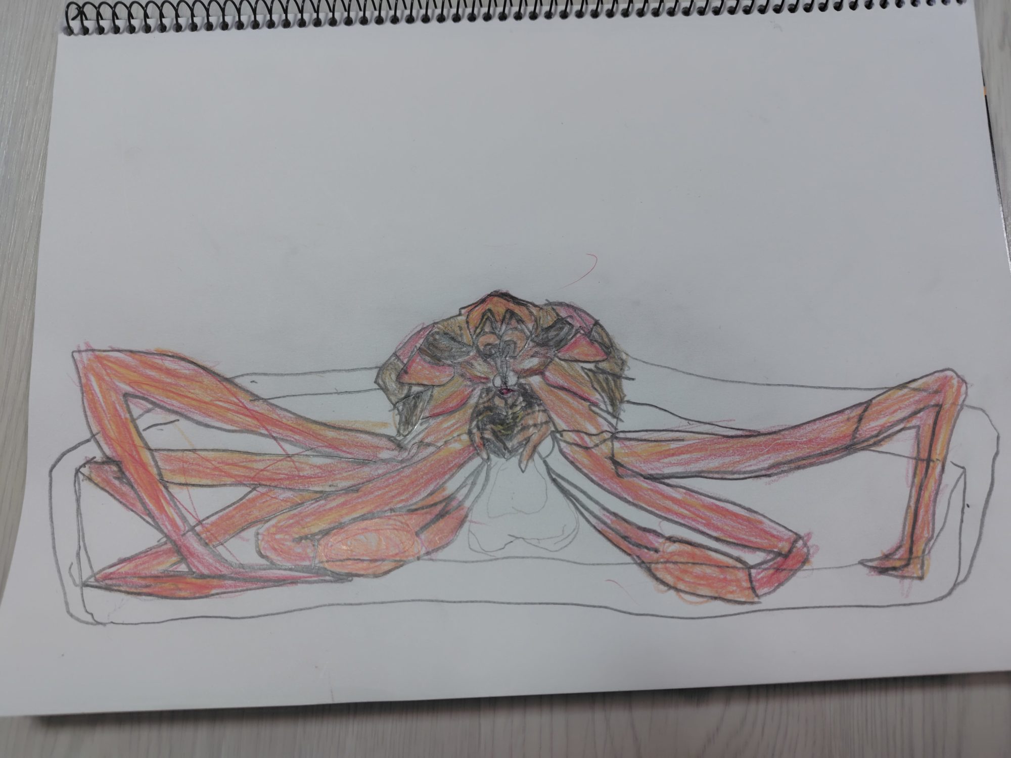 面白いんですよね…顔のところはものすごく細密に色付けもこだわっているように描いて、脚のところはざっくりとしか描いていない……「何で?」と母が聞いても「そんなこと考えて描いてないよ」と言われます(^_^;)