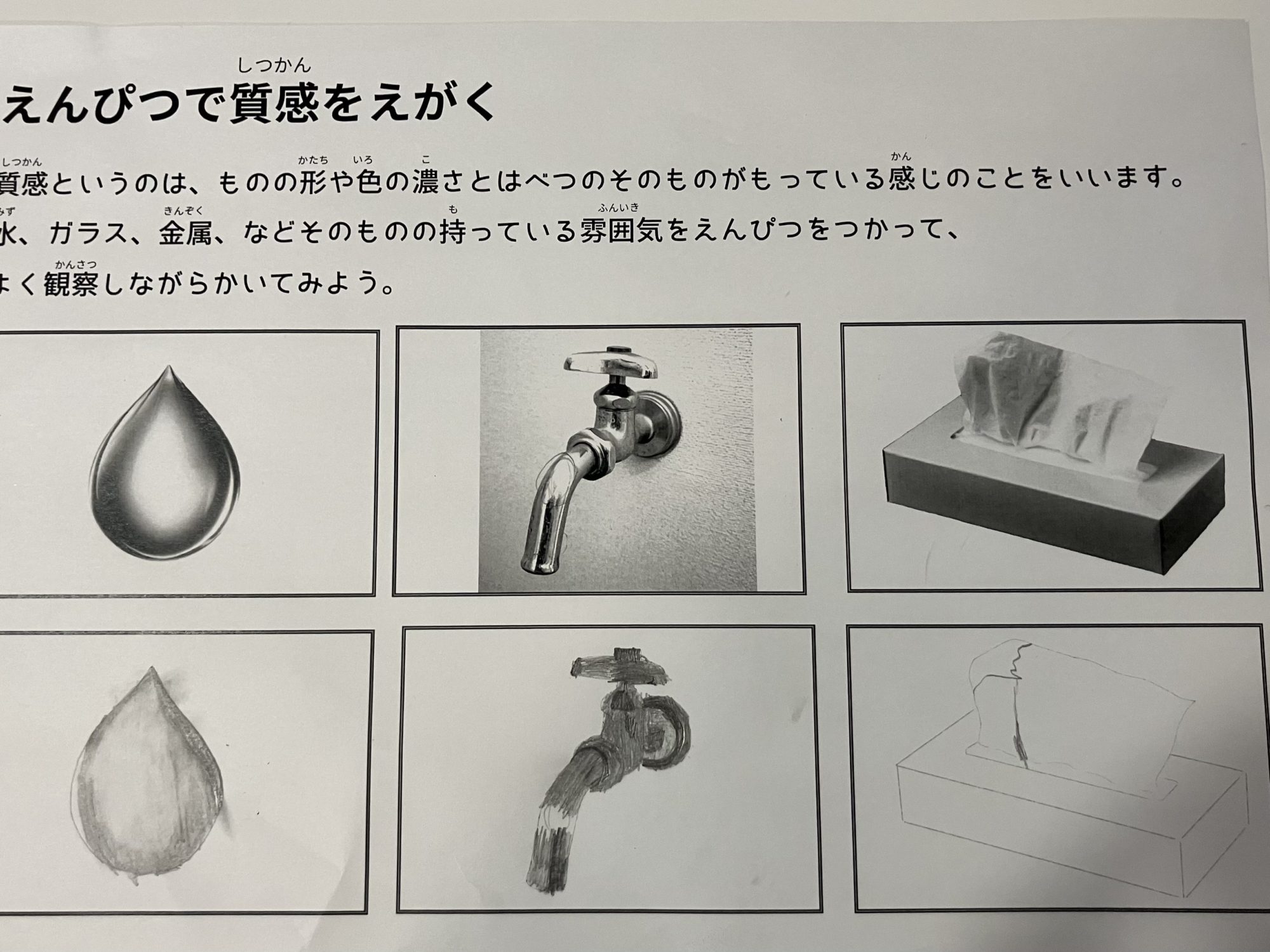 鉛筆の線の濃淡の違いがしっかり出ていて、「見る力」と「描き分ける力」がどちらも育っているのが感じられます。✨