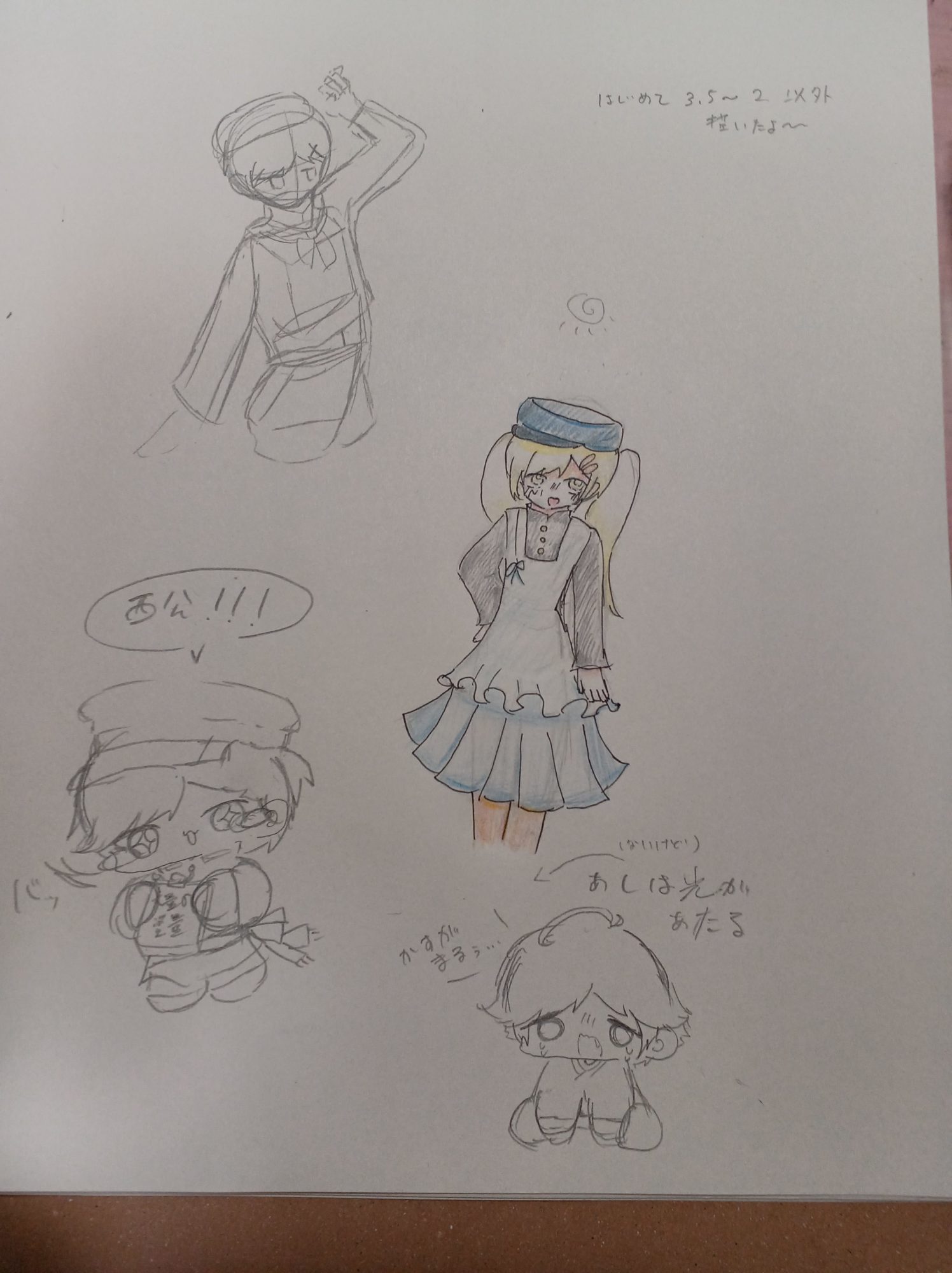 はじめて2〜3.5等身以外に挑戦したとは思えないほど、全体のバランスがしっかり取れています!スカートのひだや服の重なり方の描き方にも丁寧さがあり、光の当たり方を意識しているのが伝わってきます。とくに青のグラデーションが柔らかく、光を感じさせる表現になっていますね。
