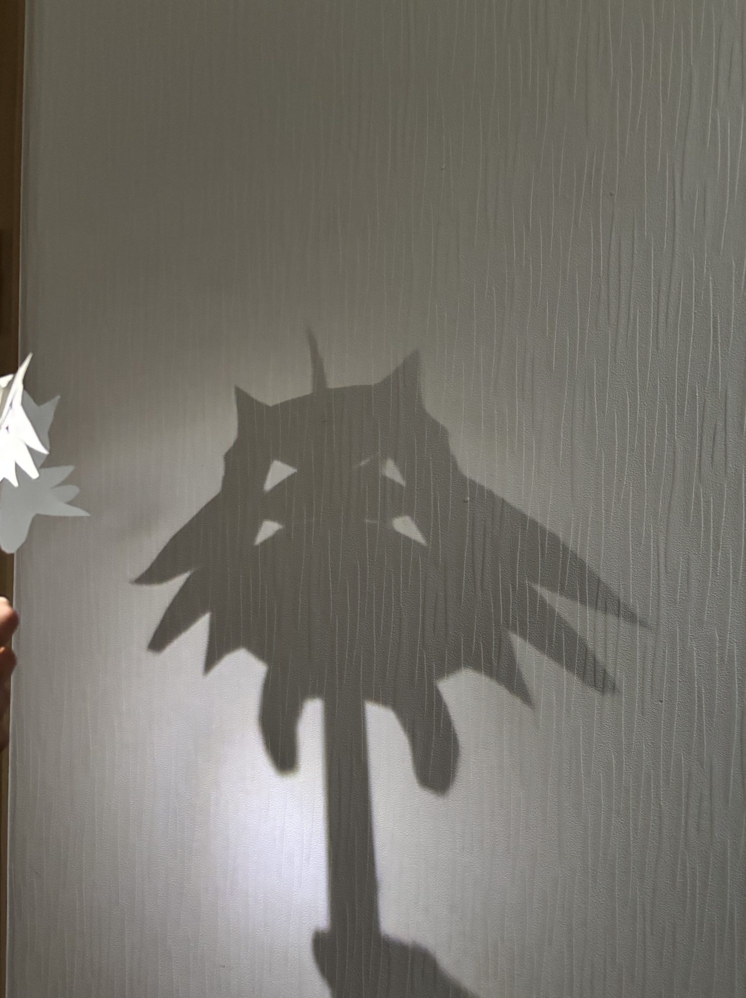 コウモリのギザギザした羽や頭の部分など、とっても頑張って切ったんだね!かっこいい影ができたね✨