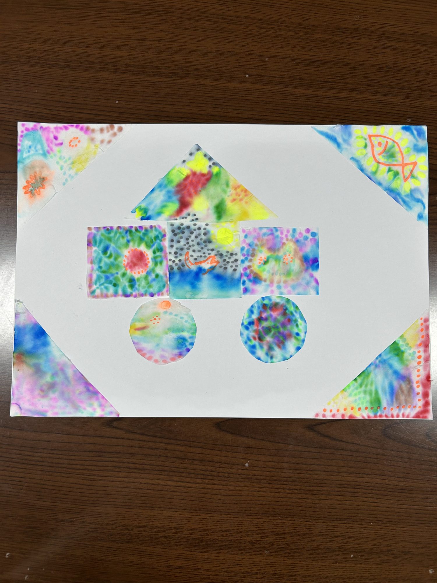 にじまなかった黄色やオレンジをそのまま生かした判断もとてもすてきです。思い通りにならなかったことを「おもしろい」と受け止めて、新しい表現につなげているところが、まことさんのアートの力ですね🌈