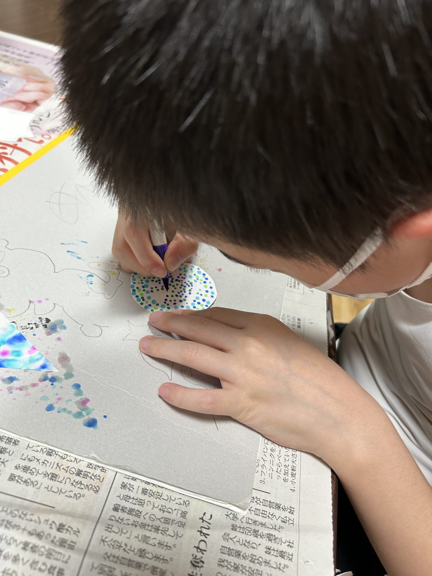 色のにじみや、にじまない特性も活かしながら制作に没頭している様子がすてきですね!