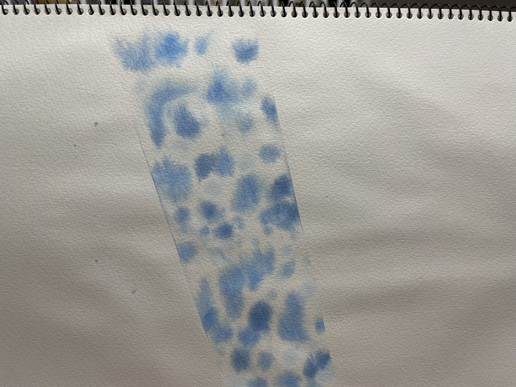 マスキングテープを使って雪のすじをつくった発想がすばらしい!青の濃淡とぼかしが、ひんやりした冬の空気と光を見事に表しています。