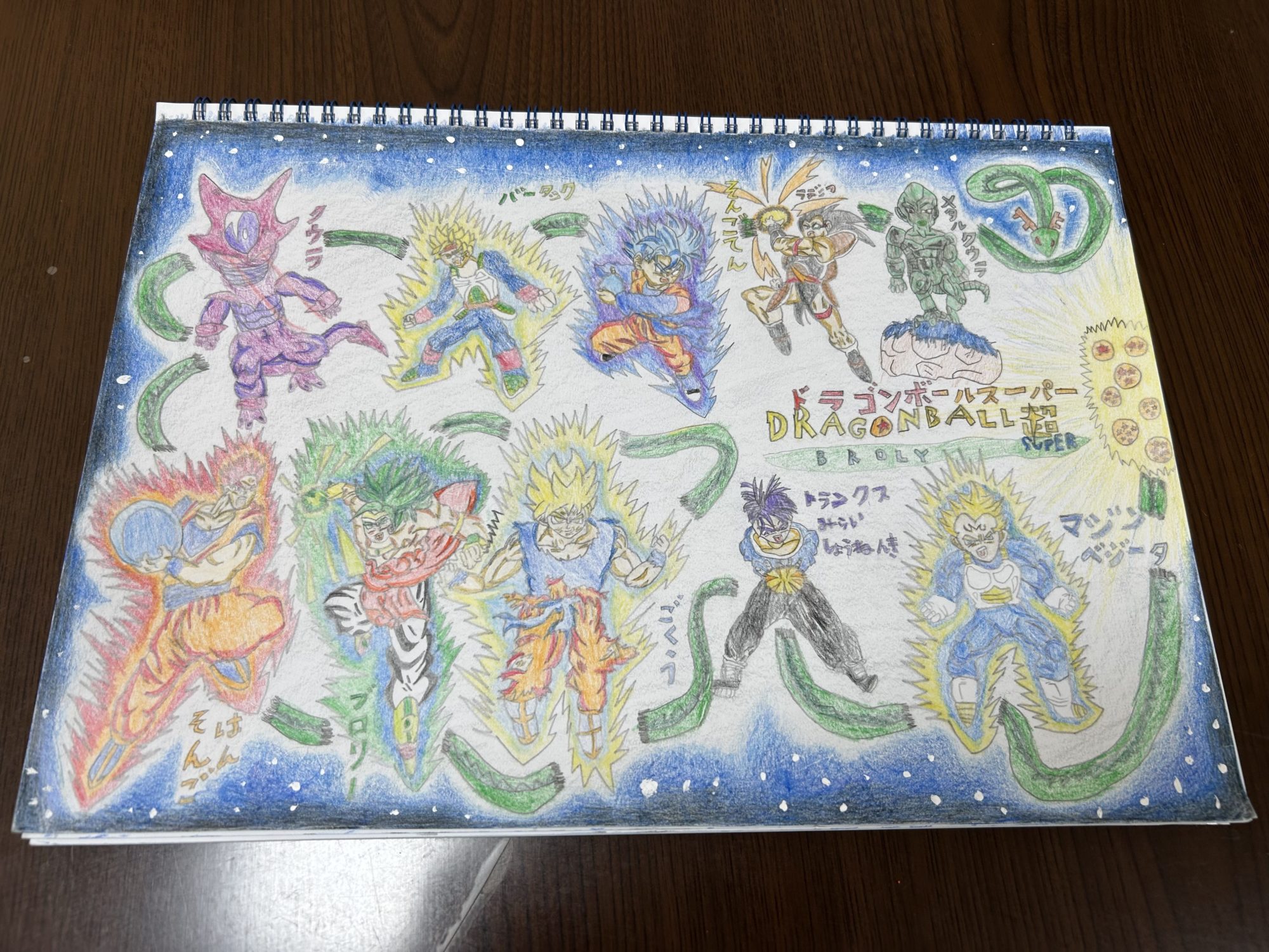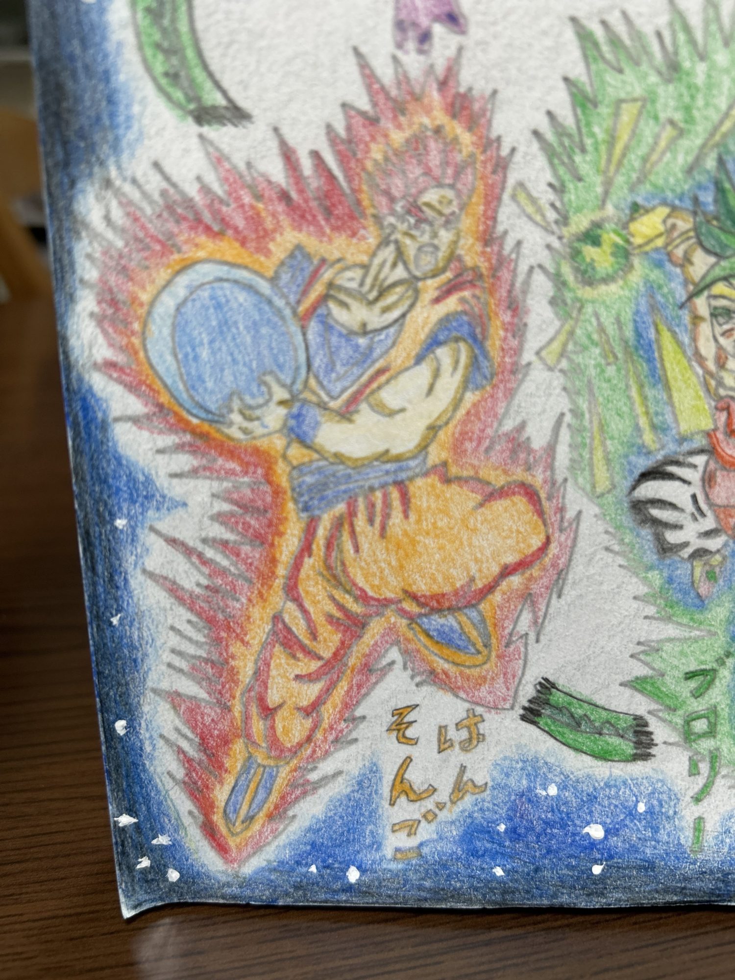 僕は、ゲームセンターのドラゴンボールの戦いのゲームが好きなんですが、そのゲームをすると出てくるカード✨がかっこいいので、それを見ながら、ポーズを描きました