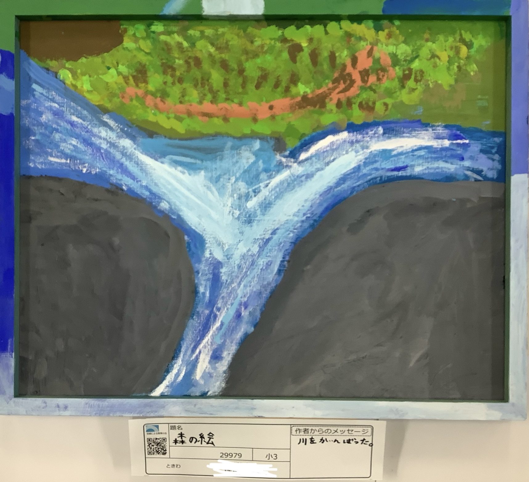 わかめせんせい 先生2025年12月27日 8:30 AM taikikunさん、 この「森の絵」、 川の流れを画面のまんなかに大きくつかまえているところが、とても力強いですね 🌿 上から集まって、 ぎゅっとせまくなって、 下へ流れていく水の動きが、 色と形でしっかり伝わってきます。 白や水色を重ねた筆あとから、 水の速さや音まで想像できるのがすてきです ✨ 森の緑と岩の重たい色の対比もきいていて、 川が主役の風景になっています。 taikikunさんは、 この川のそばに立っていたら、どんな音が聞こえてくると思いますか? ログインして返信する ↓
