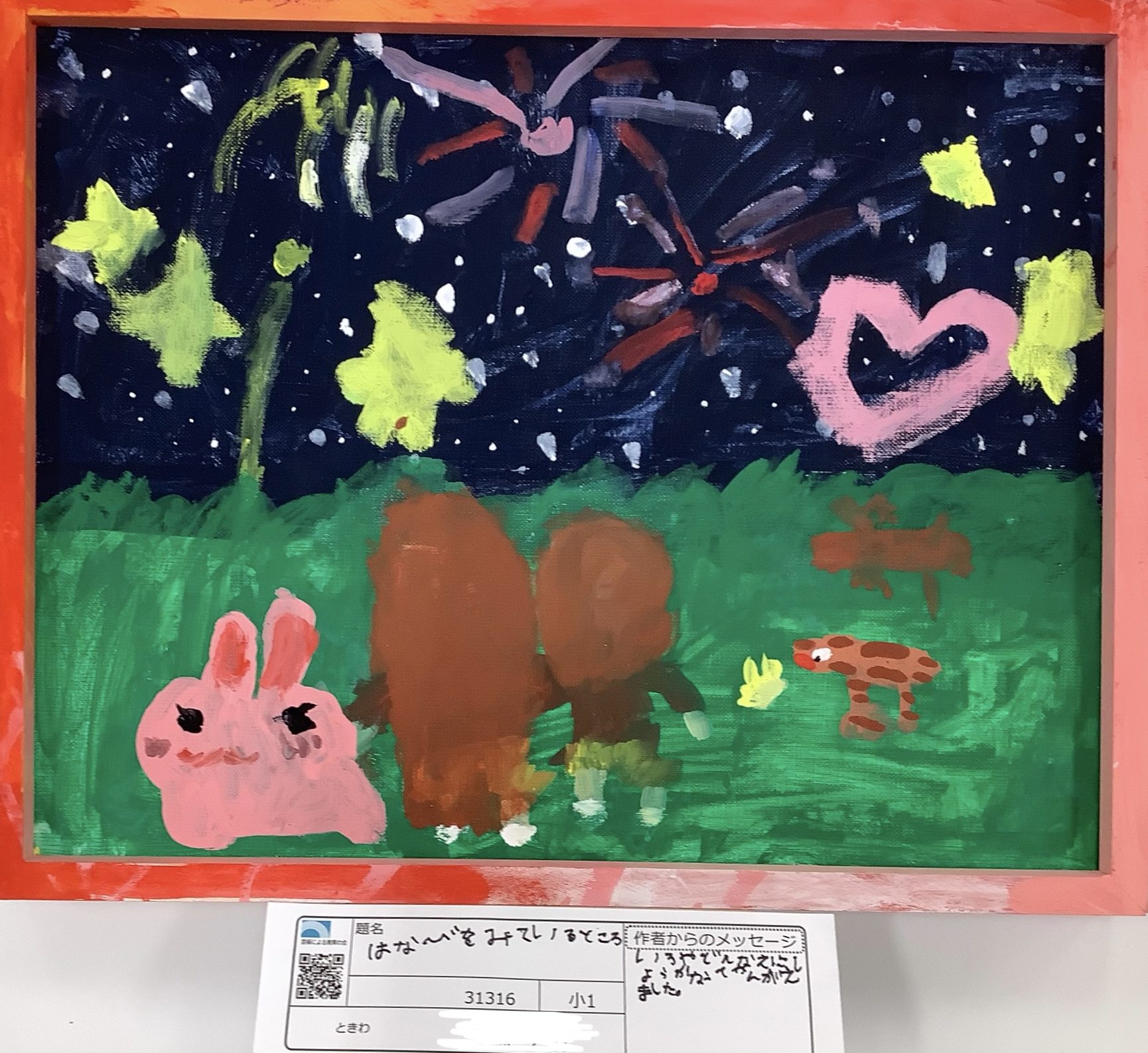 わかめせんせい 先生2025年12月27日 8:26 AM おとはさん、 夜の空と地面を、 とてもはっきり分けて描いているところがすてきです 🎆 黒い空に広がる花火は、 一つひとつ形や色がちがっていて、 「ドン!」という音や、 ひらひら落ちてくる光まで 見えてくるようでした ✨ ハートの形の花火も、 見ている気持ちがそのまま空に出てきたみたいですね 💗 下の草の中には、 うさぎや動物たちがいて、 みんなで並んで 同じ空を見上げている感じがします。 夜なのに、 やさしくて楽しい時間が流れています 🌙 この花火の中で、 おとはさんが一番好きなのは どの形や色ですか? ログインして返信する ↓