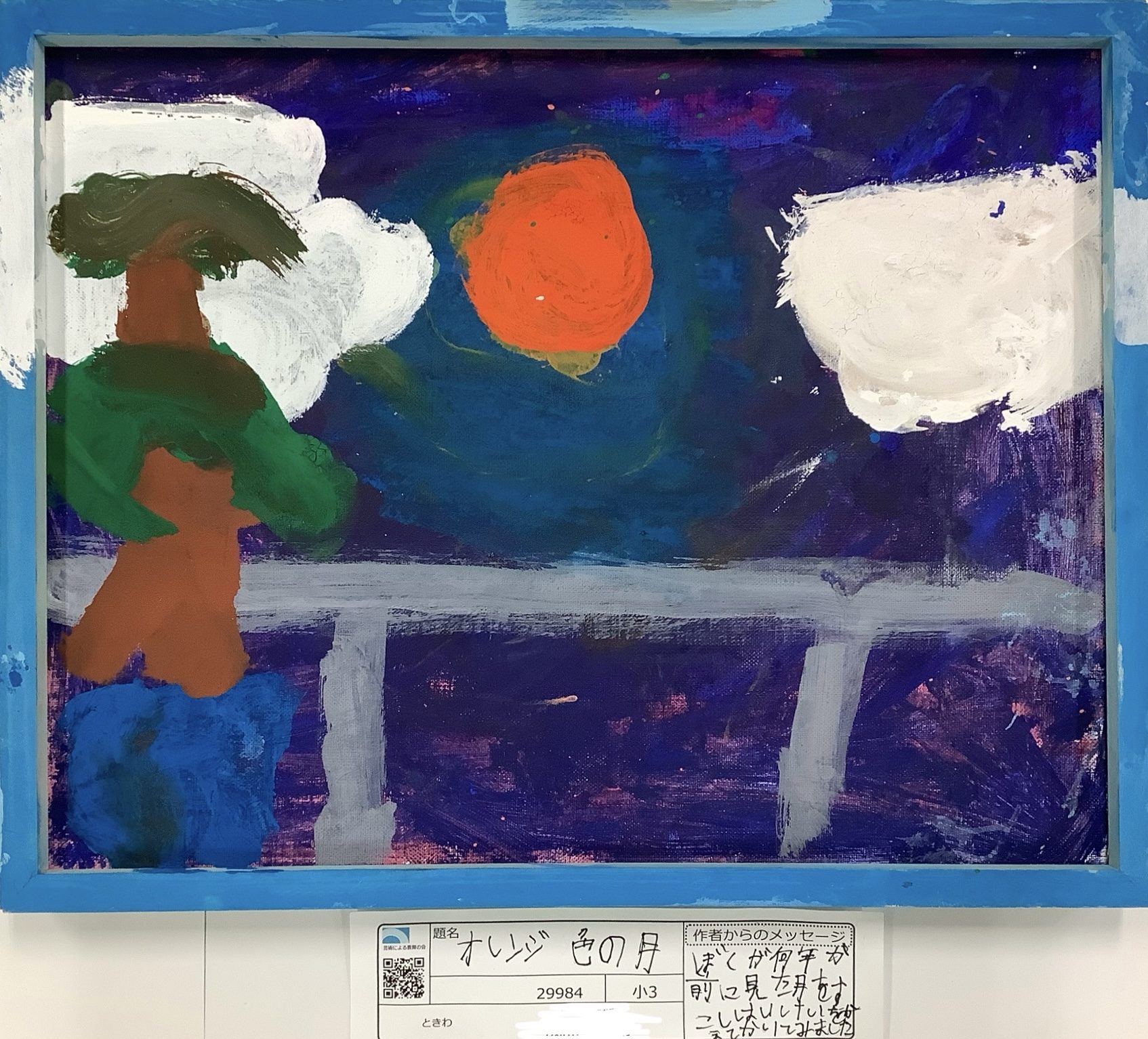 わかめせんせい 先生2025年12月27日 9:15 AM Narytomo15さん、 この絵を見ていると、夜の時間がゆっくり流れはじめる感じがします🌙 深い青や紫の空の中に、オレンジ色の月がぽつんと浮かんでいて、 「今日はいつもとちがう夜だな」と感じた瞬間が、そのまま絵になっていますね。 月の色をあえて強く選んだことで、空の静けさや不思議さが、よりはっきり伝わってきます✨ 雲や木、手前の形も、きれいに整えすぎず、見たときの気持ちを大事にしているところがとてもステキです。 色で空気や時間を描こうとする力が、しっかり育っている一枚だと思いました😊 ログインして返信する ↓