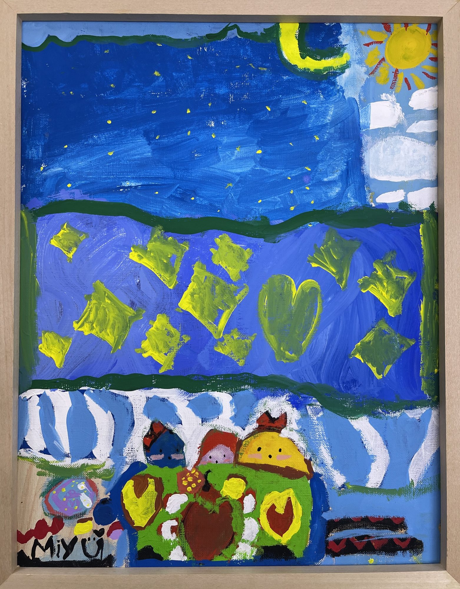 わかめせんせい 先生2025年12月27日 10:19 AM miyukiさん たべものたちが、 ほんとうに旅をしているみたいで、 見ているだけでワクワクしますね😊 夜の空と昼の空が、 一つの画面の中でつながっていて、 時間まで一緒に動いている感じがします。 黄色の星や月が、 たびの道しるべみたいです🌙✨ 下のほうに集まったたべものたちも、 ぎゅっと仲良くくっついていて、 「これからどこへ行くんだろう?」と 声が聞こえてきそうです🍎🍞 色の重なりや、 思いきりのいい形が気持ちよくて、 miyukiさんの想像の世界が、 そのまま画面に広がっています。 この旅のつづき、 次はどんな場所に着くと思いますか?🚀 ログインして返信する ↓
