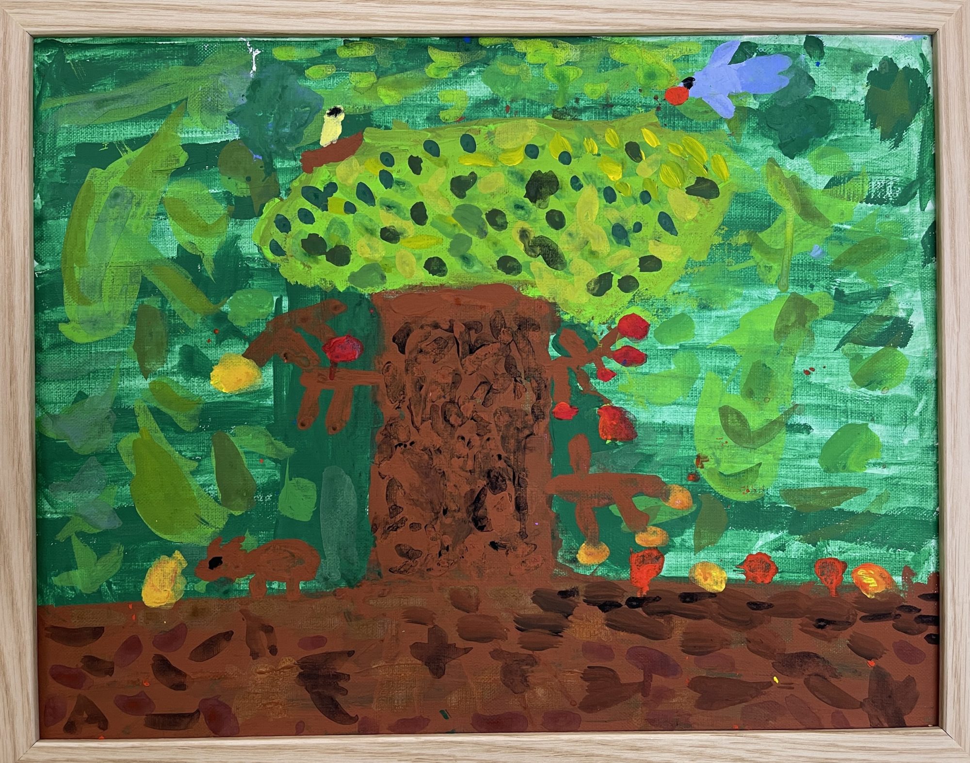 わかめせんせい 先生2025年12月27日 10:07 AM 0805ryさん 画面いっぱいに広がる 大きなリンゴの木が、とても力強く感じられます🍎 太い幹からは、 この場所で長い時間を過ごしてきた 木の存在感がしっかり伝わってきますね。 葉っぱの緑も一色ではなく、 明るさや重なりがあって、 光や風が通り抜けているようです🌿 赤や黄色のリンゴが点々と描かれていて、 たくさん実っている様子が楽しく伝わってきます。 地面の色も重ねて描かれているので、 土のやわらかさや温かさまで想像できます。 この木の下に立ったら、 どんな音やにおいがすると思いますか?😊 ログインして返信する ↓