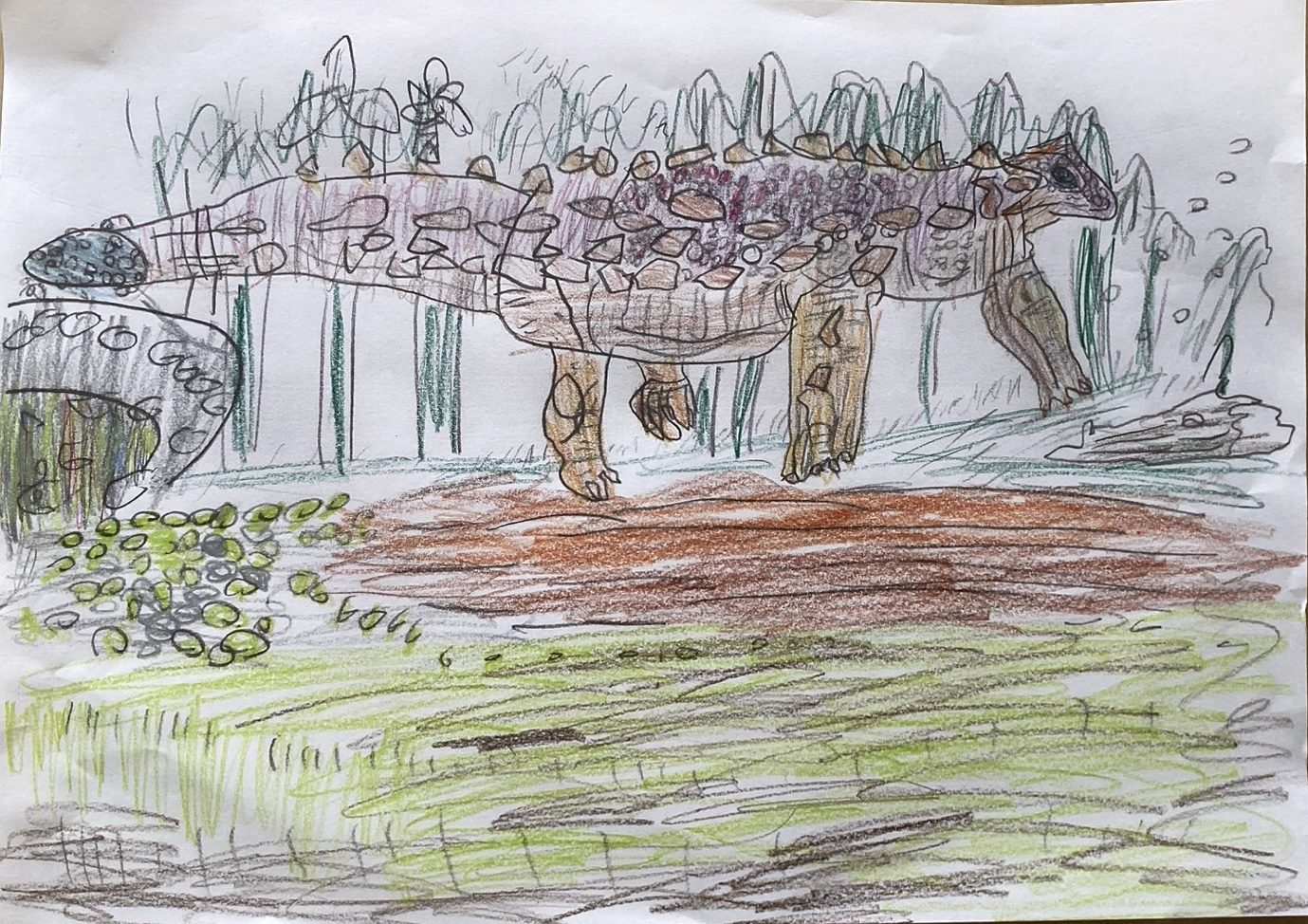 きくちわかこ 先生2025年11月9日 9:17 AM 恐竜のゴツゴツを、しっかりと線で追っていて、とてもリアルだね!🦕🦖 kenkenさんらしい、いきおいのある線がありながらも、「線で囲った中を塗る」意識もあるように感じます! この恐竜は何をしているところなんだろう?お散歩しているのかな?👀 ログインして返信する ↓