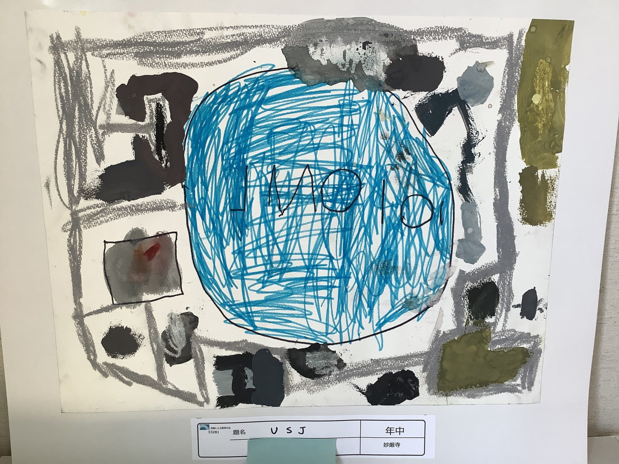 私には、いろいろなものを見て、感じて、「ここが楽しかった!」という気持ちを、一つの大きなかたまりに集めたように見えました。ワクワクがあふれて、思わず線をたくさん動かしたのかな、と想像しています😊