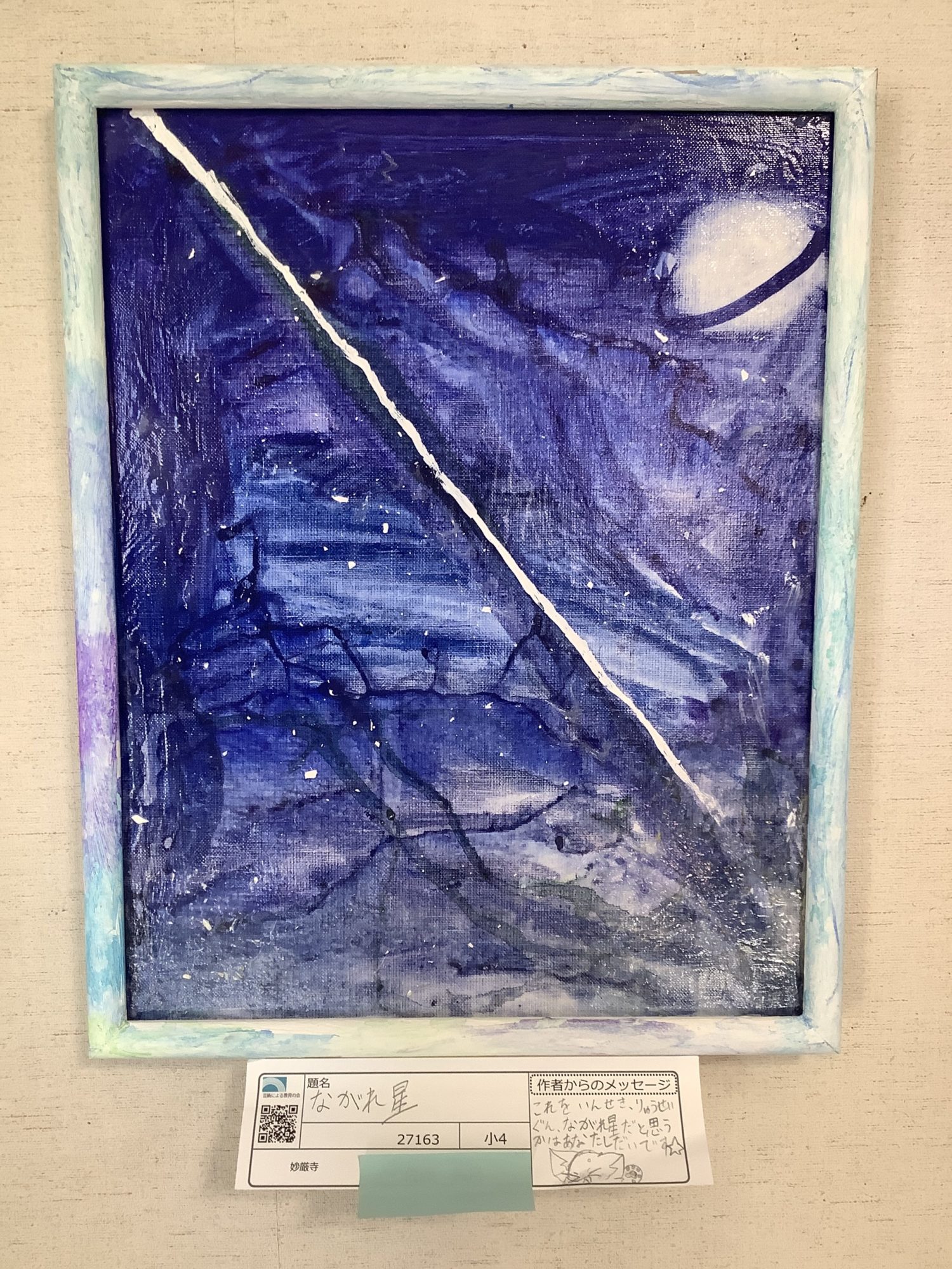 一瞬で消えてしまう流れ星の「はやさ」や「大切さ」が、色と線だけでしっかり伝わってくる作品ですね✨