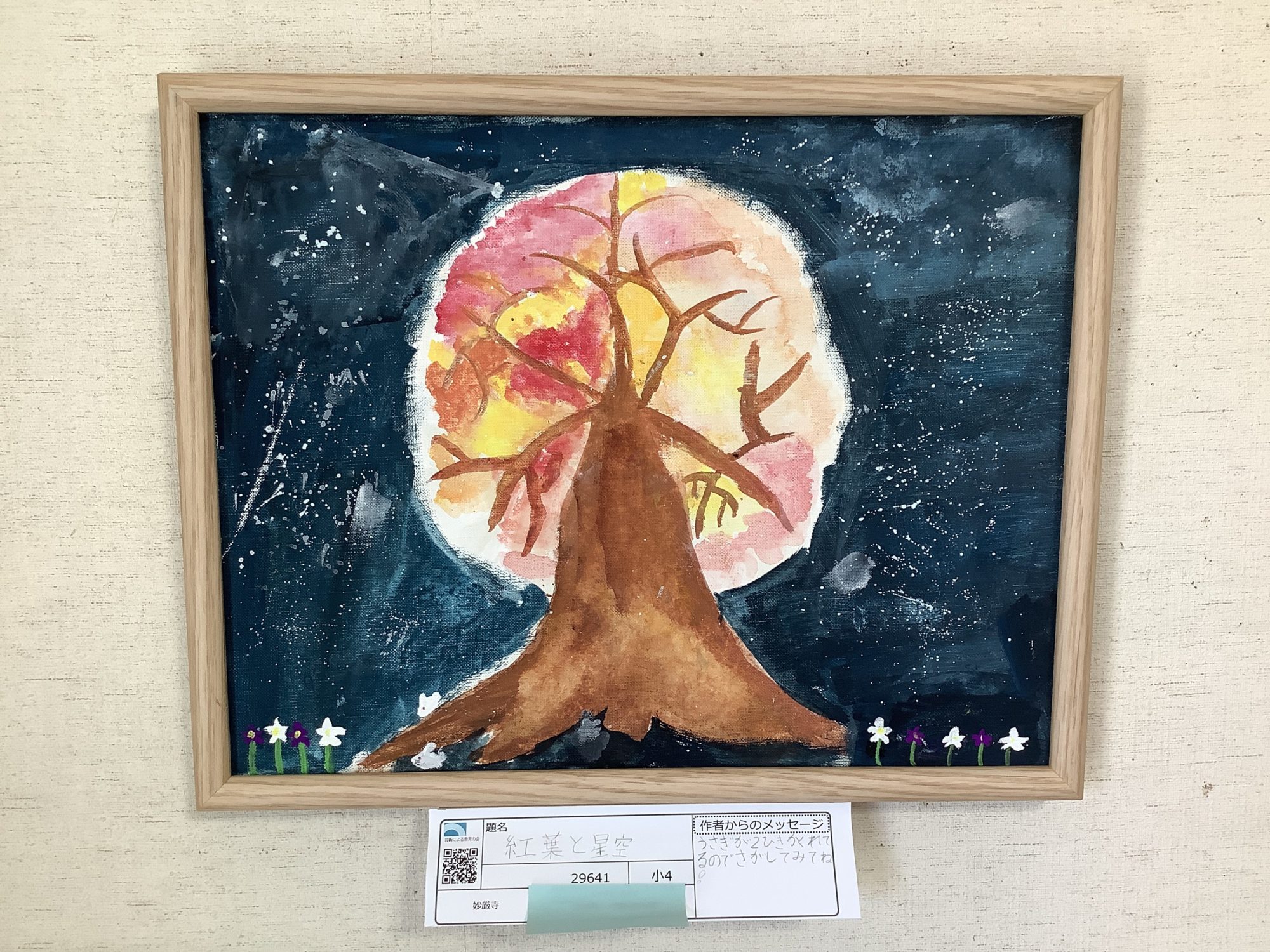わかめせんせい 先生2025年12月27日 11:46 AM あみさん。 大きな月(あるいは光)を背にした一本の木が、夜の静けさの中でしっかりと立っています🌕 幹の力強さと、枝ののびやかな動きが、時間の積み重なりを感じさせます。 紅葉の色はにじむように重なり、星空の深い青と溶け合って、とても印象的です✨ 足元にそっと描かれた小さな花も、画面にやさしいリズムを生んでいます。 静かな夜の中に、あたたかい気配が残る一枚です🌿 ログインして返信する ↓