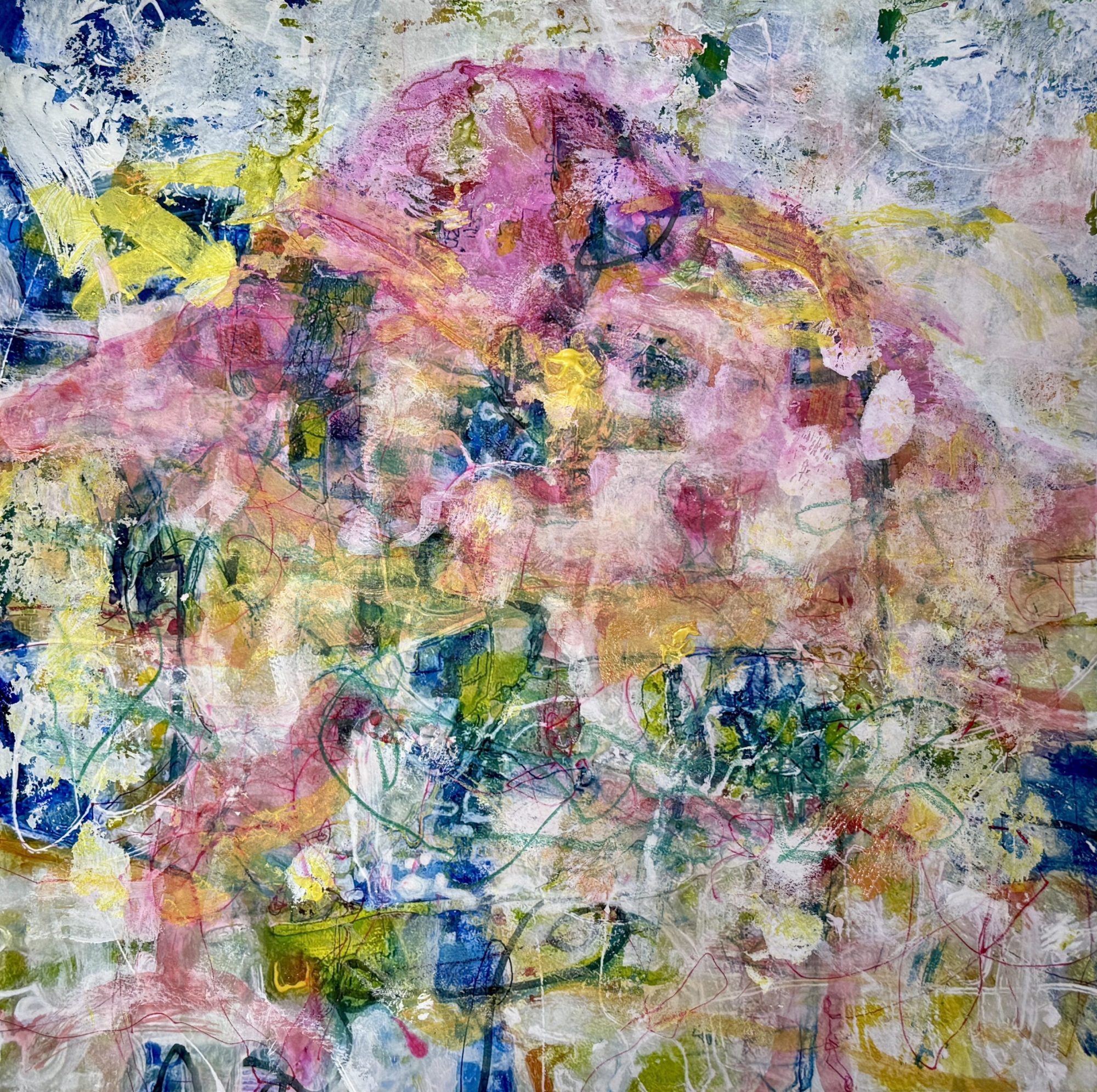 この作品は、色を重ねているうちに “山のようなもの” がふわっと立ち上がってきて、