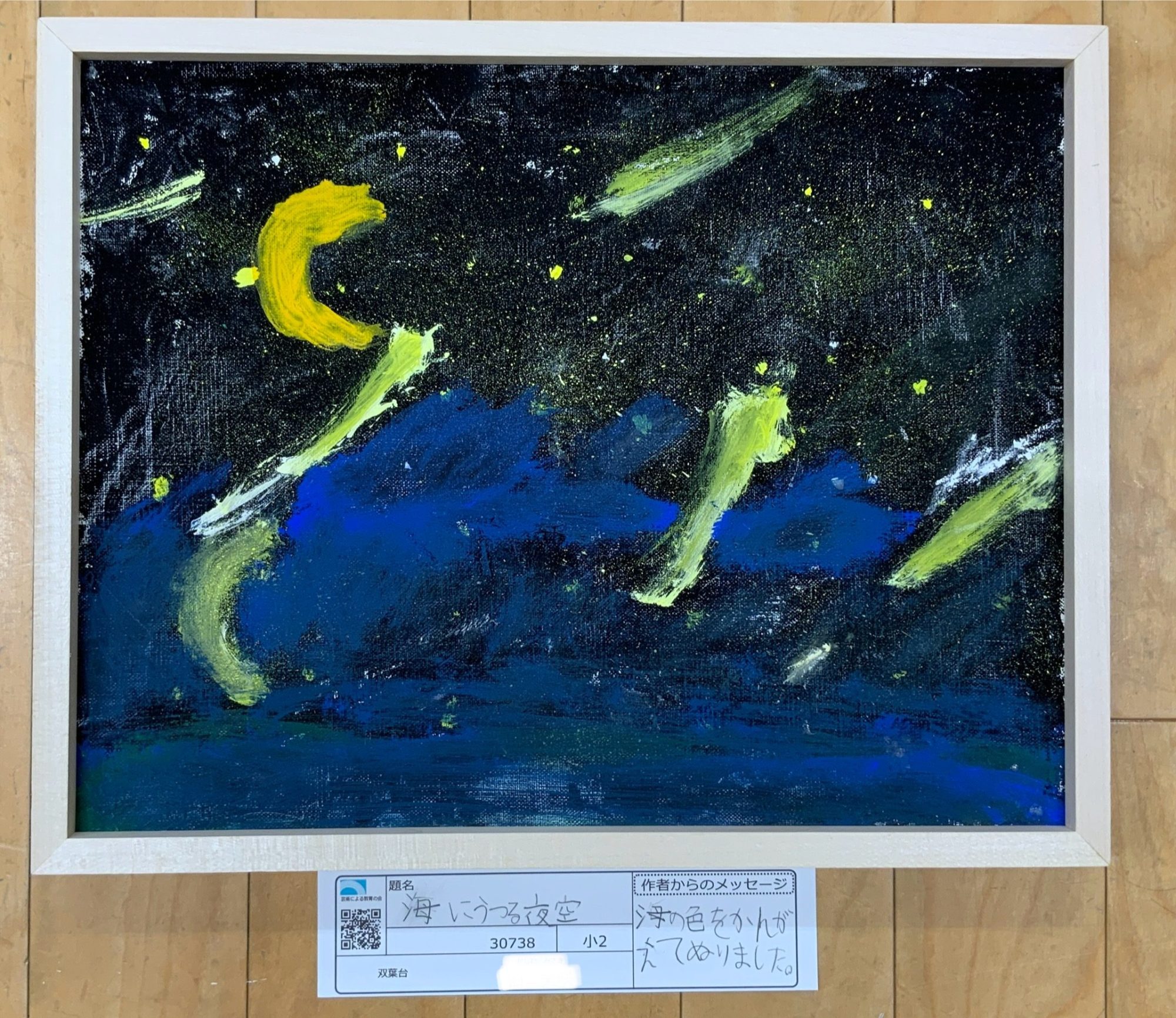 わかめせんせい 先生2025年12月27日 2:08 PM みみささん、 夜の空と海が、まるでひとつの世界のようにつながって見えます🌙🌊 空に散らした黄色や白の光が、そのまま海に落ちて、 水面のゆらぎと一緒に揺れている感じがとてもきれいですね。 筆の動きがそのまま波や風になっていて、 静かな夜なのに、どこか動き続けている時間を感じます✨ 夜を「暗さ」ではなく、「光が生きる場所」として描けたところが、この作品のいちばんの魅力です。 ログインして返信する ↓
