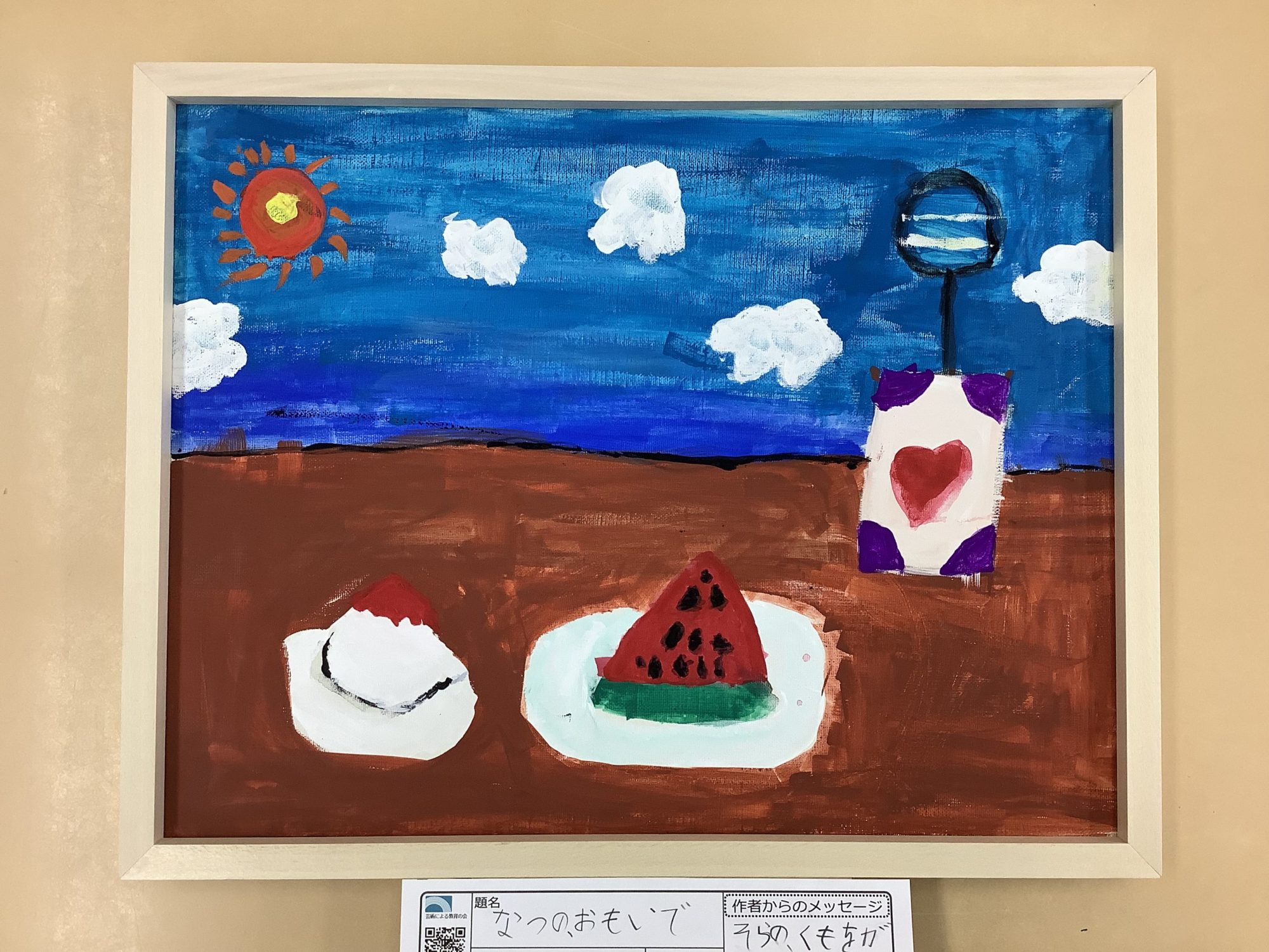 わかめせんせい 先生2025年12月27日 3:50 PM ケイコさん、 青い空と茶色い大地のはっきりした分かれ方が、 夏の強い日差しをそのまま伝えてくれますね☀️ お皿の上のスイカとアイスが、 ぽん、と置かれているだけなのに、 「暑いね」「早く食べたいね」という声が 聞こえてくるようです🍉🍨 太陽、雲、標識のような形、 一つ一つがシンプルで、 だからこそ思い出がまっすぐ心に届きます。 楽しかった時間を、 迷わず色にしたところがとても素敵です✨ この夏の思い出の中で、 いちばんワクワクした瞬間はどれでしたか? ログインして返信する ↓