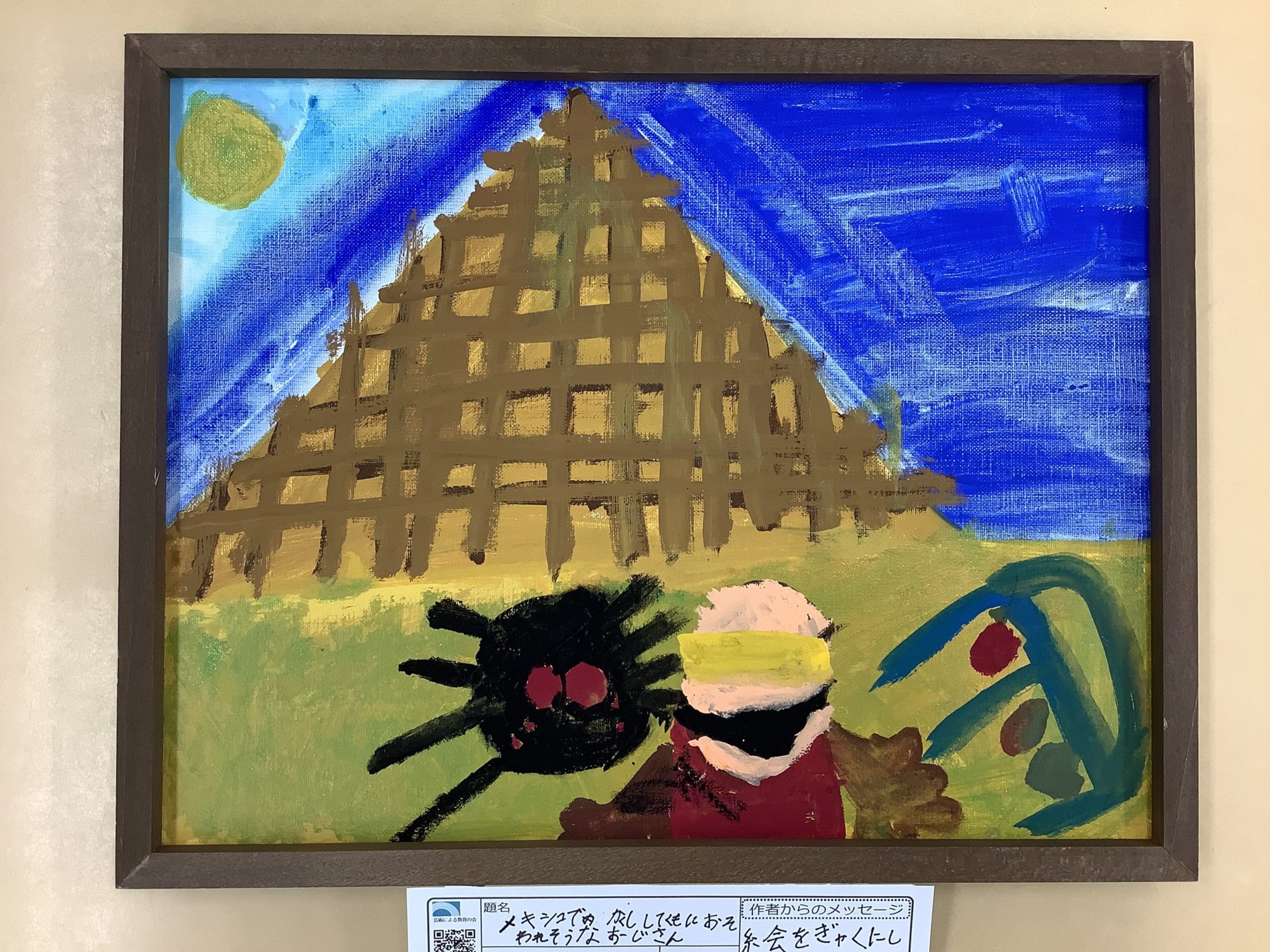 わかめせんせい 先生2025年12月27日 3:47 PM mamimamaさん、 タイトルを読んだ瞬間から、物語の世界にぐっと引き込まれました😊 ピラミッドのような建物と強い青空、そこに現れる黒いくもと目かくしのおじさん。 場面の不安さとユーモアが同時に伝わってきて、とても印象的です。 くもの形や赤い目の強さ、人物のポーズもはっきりしていて、 「これから何が起こるんだろう…」と続きを想像したくなります🕷️ 色の組み合わせも大胆で、怖さの中に楽しさがありますね。 もしこの先の場面を描くとしたら、 おじさんはどうなったと思いますか?✨ ログインして返信する ↓