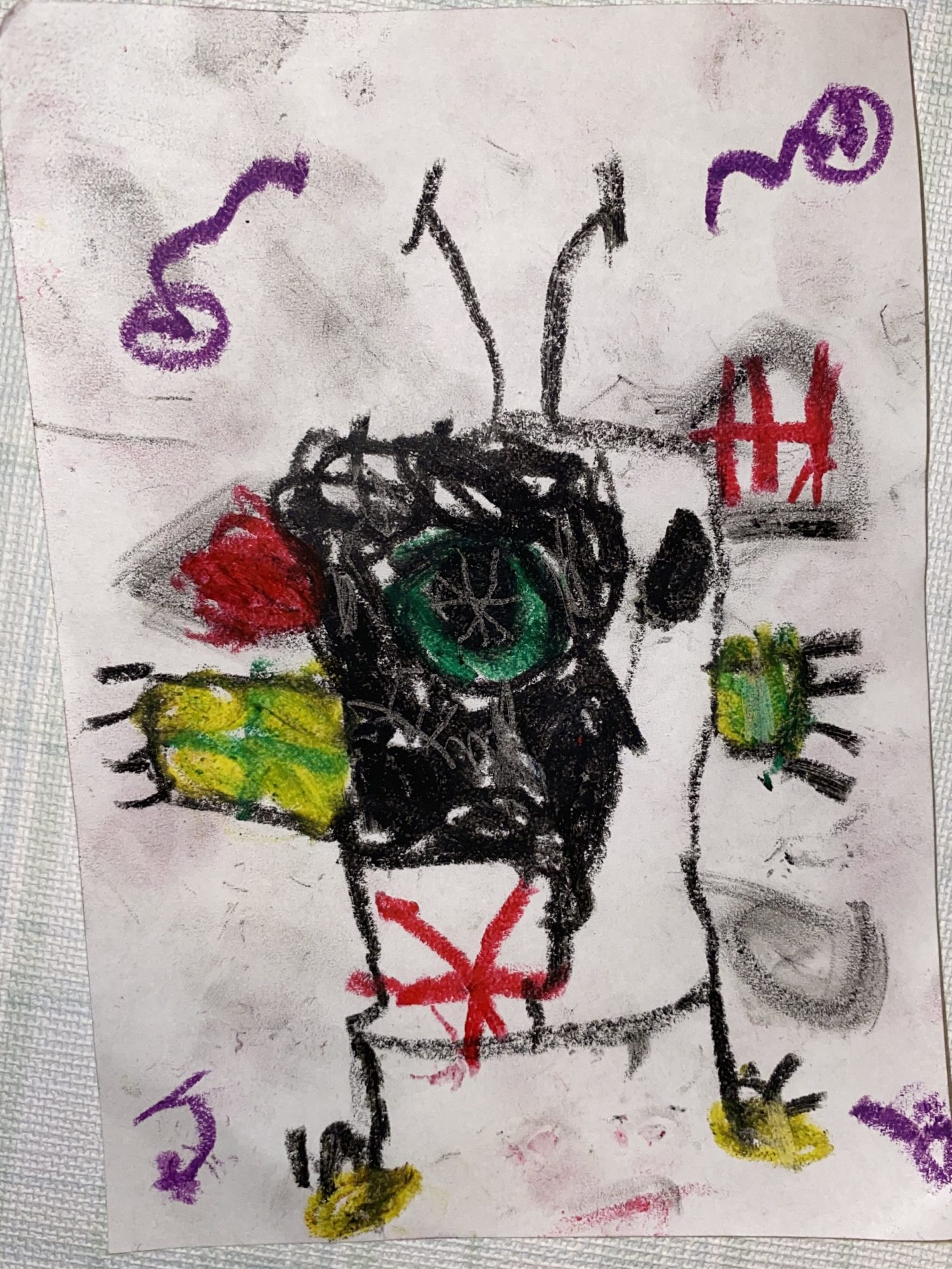 黒い身体のまんなかに描かれた“緑のひかり”が、とても力強くて、まるで心臓の鼓動が伝わってくるように見えました💚