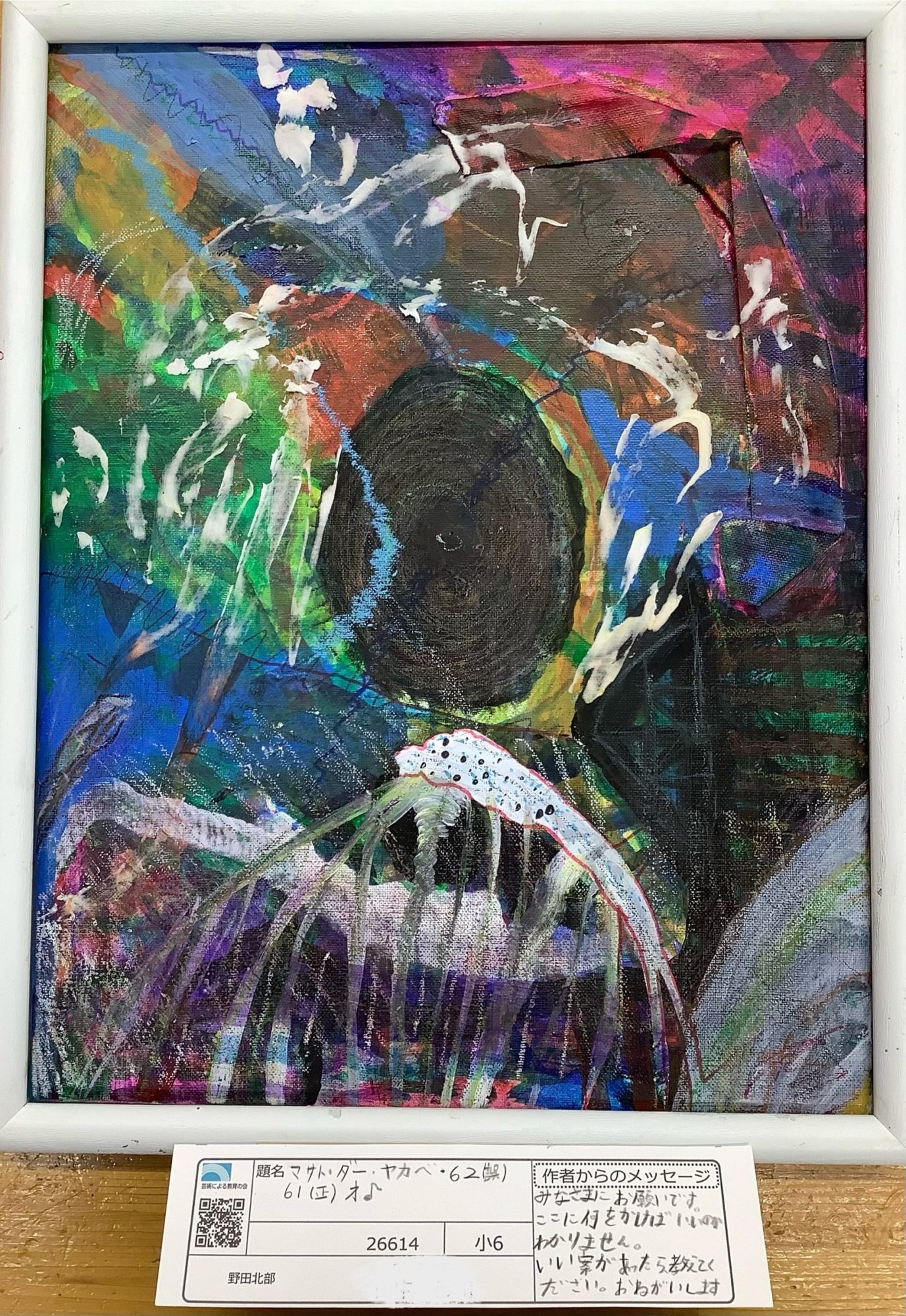 わかめせんせい 先生2025年12月27日 5:05 PM 山中ゆうわさんへ。 このタイトルを見た瞬間、思わず声が出ました😅 自分の名前が作品の中心に置かれるなんて、正直ちょっと恥ずかしいです。 でもそれ以上に、ここまで自由に、遠慮なく、色や形をぶつけてくれたことがうれしいです✨ 強い色の重なりや、中央に集まるエネルギーから、 「だれか」を描きながら、「じぶんの世界」を思いきり広げている感じが伝わってきます。 タイトルも含めて、この作品は一つの表現そのものですね🎨 この絵を描いているとき、いちばん楽しかったのはどの部分でしたか? ログインして返信する ↓