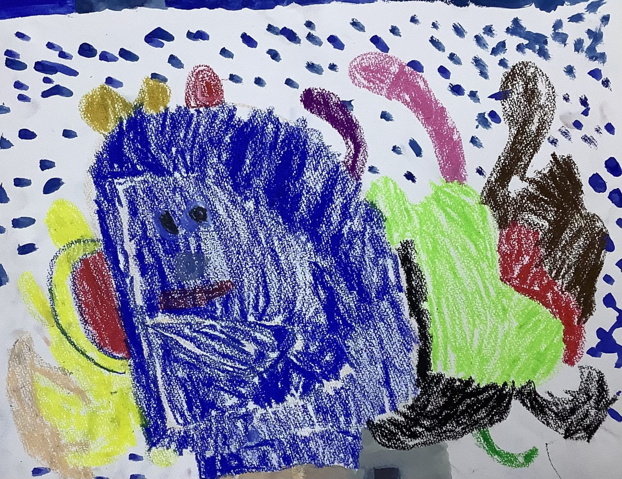 わかめせんせい 先生2026年1月3日 9:16 PM ゆうとさん、こんにちは。 青い色で大きく描かれたネコが、画面のまんなかでどーんと存在感を出していますね。体の中に四角い形があって、目や口もはっきり見えて、ネコの表情がとても印象に残りました。まわりにたくさん散らばる青い点や、黄緑や茶色の色が、ネコの動きや気配をつくっているようです。 私はこの絵から、ネコをじっと見て「ここが好き」「これを描きたい」と思った気持ちを感じました。ひとつの生きものを、色や形でたっぷり表したところがすてきだなと思いました。 このネコは、いま何をしているところだと思いますか?🐱🎨💙 ログインして返信する ↓