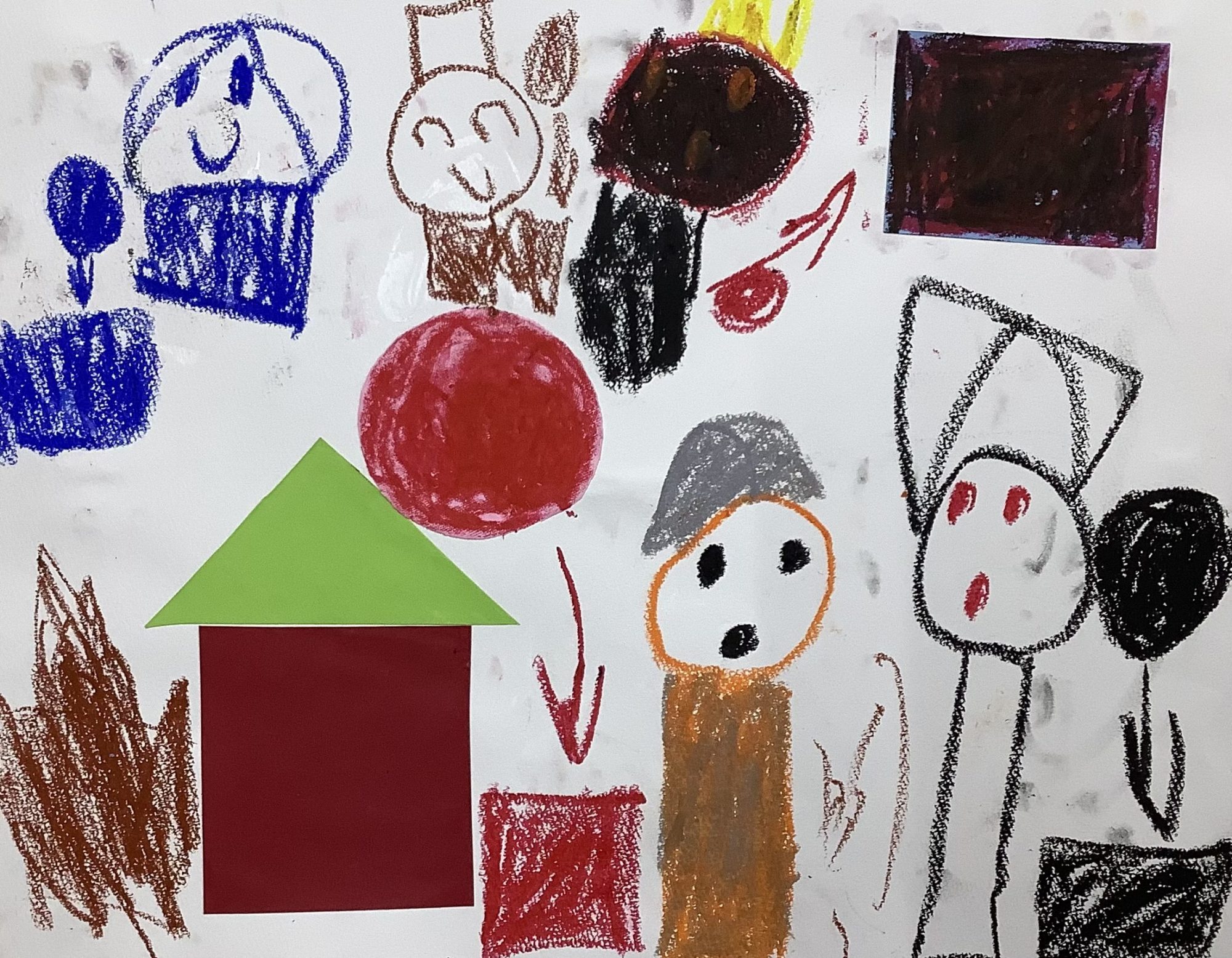 いろいろな顔や形が、画面いっぱいに集まっていて、「ここはキャラクターが生まれる場所なんだな」と感じました。丸い赤、しかくい赤、さんかくの屋根、そしてクレヨンの線で描かれた人たち。それぞれがちがうのに、同じ世界にちゃんと並んでいるところが、とてもおもしろいです😊