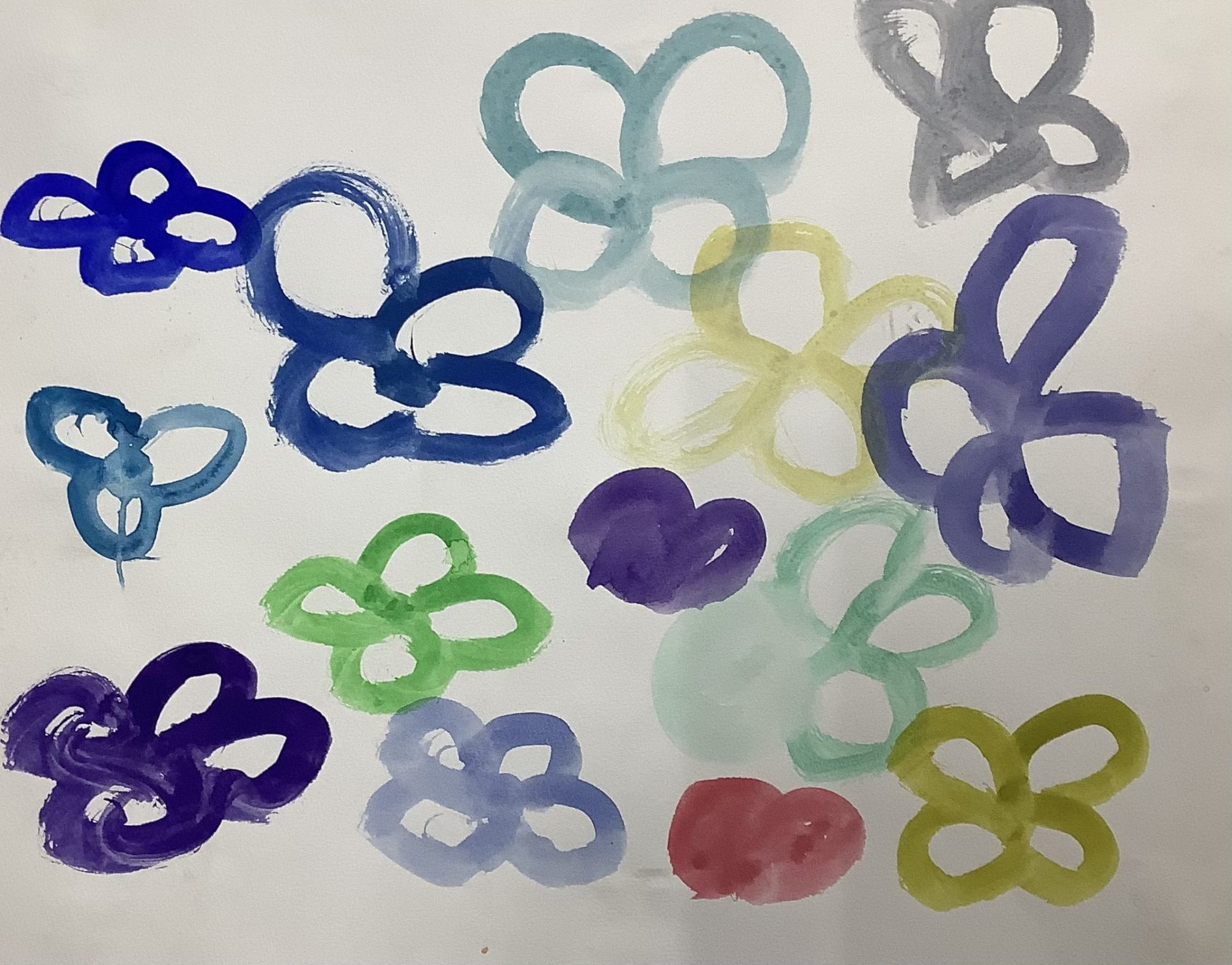 やさしい色のおはなが、ふわふわ空にうかんでいるみたいですね。あお、みどり、むらさき、きいろ…同じ「おはな」でも、ひとつひとつ色もかたちも少しずつちがっていて、とても気持ちがいいです🌸