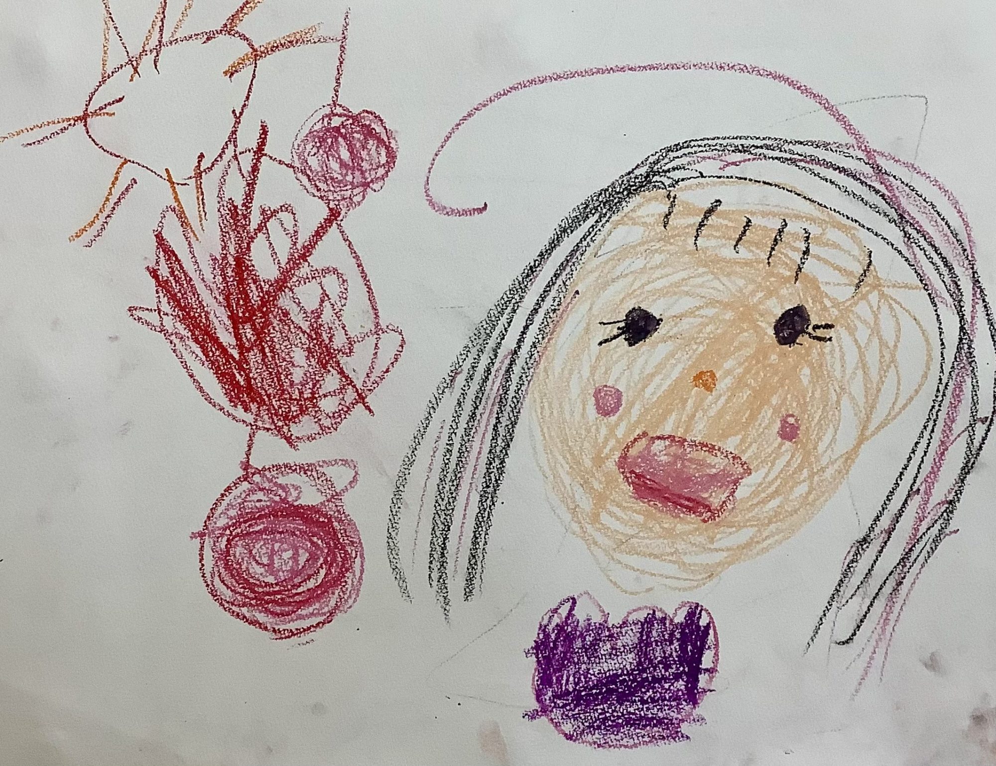 わかめせんせい 先生2026年1月4日 9:33 AM みことさんへ。 大きくえがかれたおかおが、画面いっぱいにひろがっていて、いちばんに「こんにちは!」って声をかけてくれているみたいですね。 おめめのまわりやほっぺが、くるくる・ふわふわした線でぬられていて、やさしい気持ちや、あたたかさが伝わってきます😊 くちびるのピンクや、むらさきのおようふくの色も、とてもよくえらばれていて、「これがすき!」という思いがはっきり見えます。 左にえがかれた赤いかたまりや線も、気持ちが元気にうごいたあとみたいで、この絵にリズムをつくっていますね。 みことさん、このおかおは、いまどんな気もちで、だれを見ていると思いますか? ログインして返信する ↓
