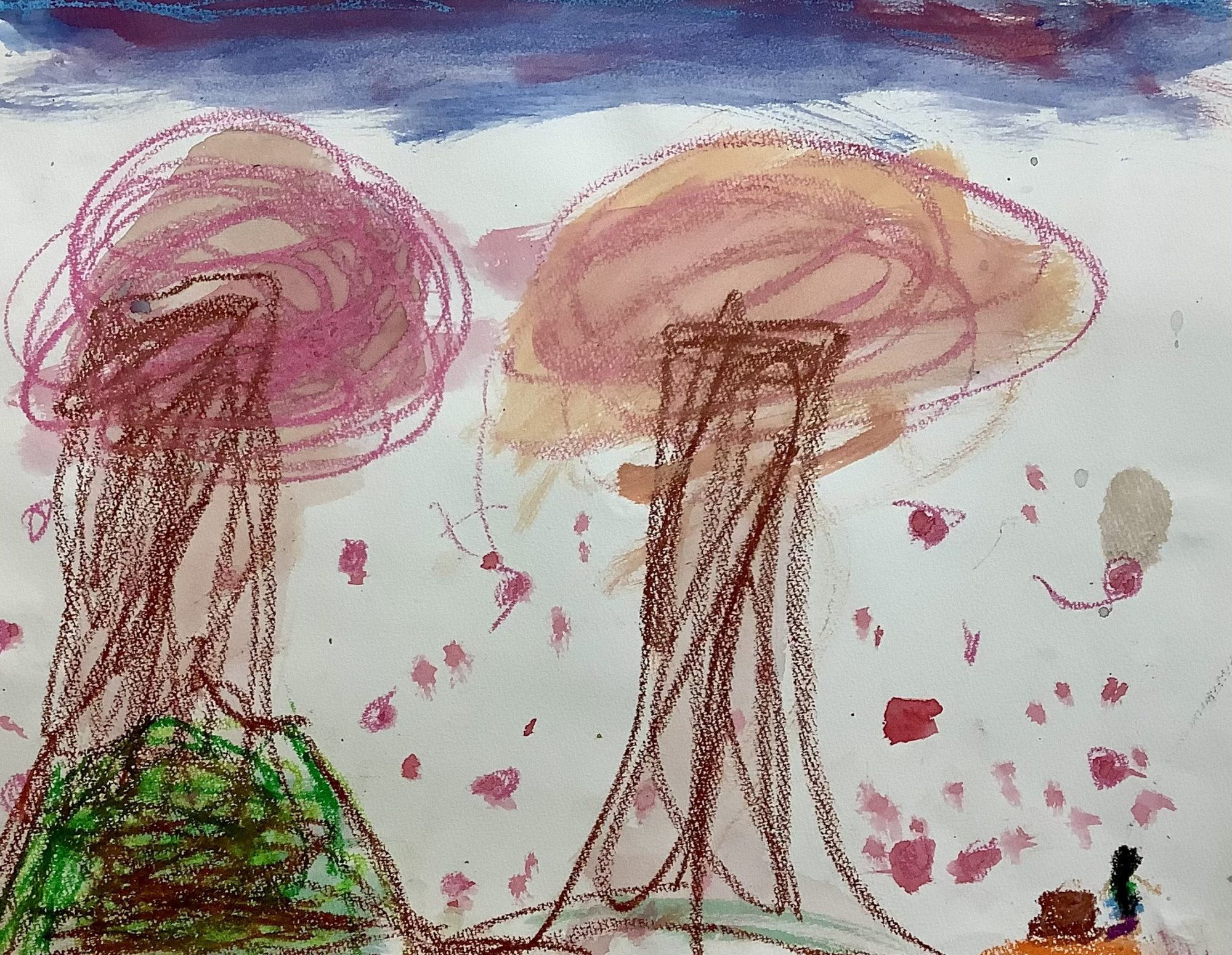私はこの絵を見て、静かに花を見上げている気持ちになりました🌸🌳☁️