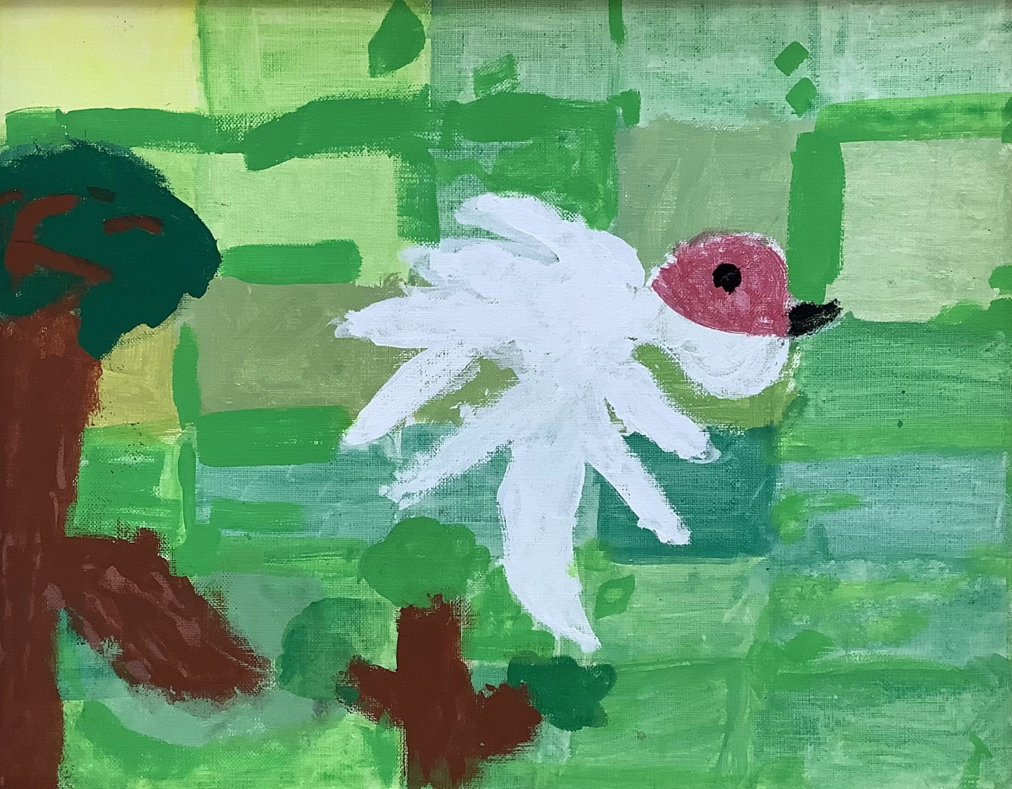 思い切りのよい筆づかいで羽の動きを表したところは、とても大切な表現です。これからは、トキのまわりの空の色や風も描いてみると、動きがさらに広がりそうですね✨