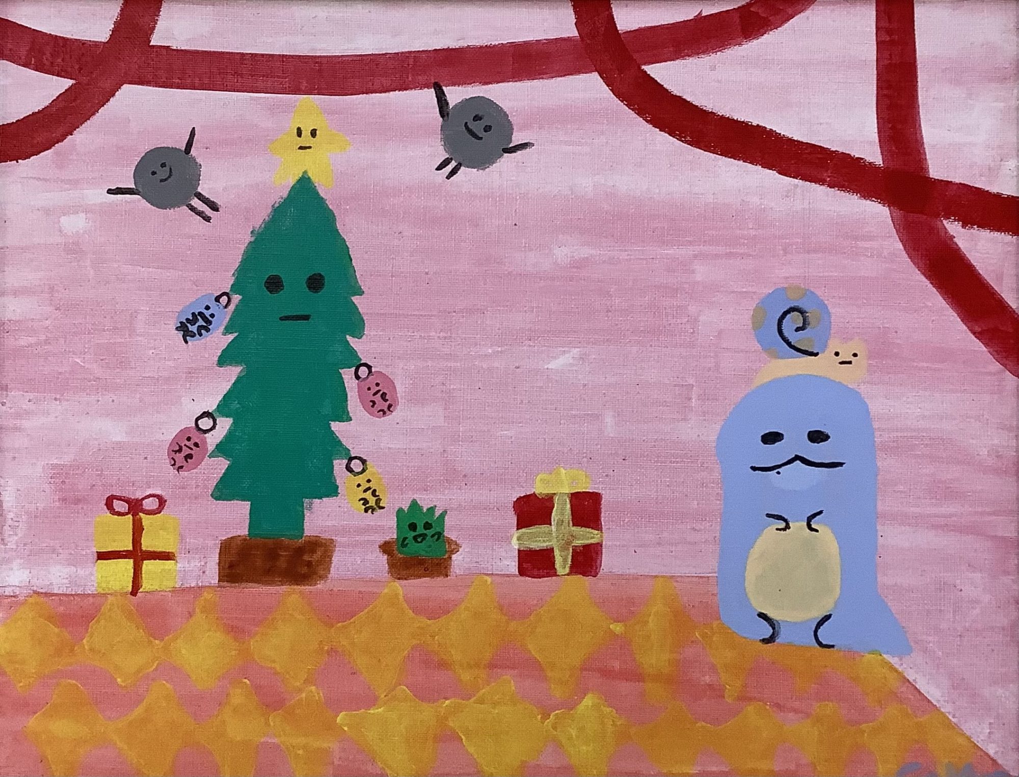 ツリーやプレゼント、キャラクターの表情が一つひとつ違っていて、色の組み合わせもあたたかく、見ていると目が自然に行き来します😊