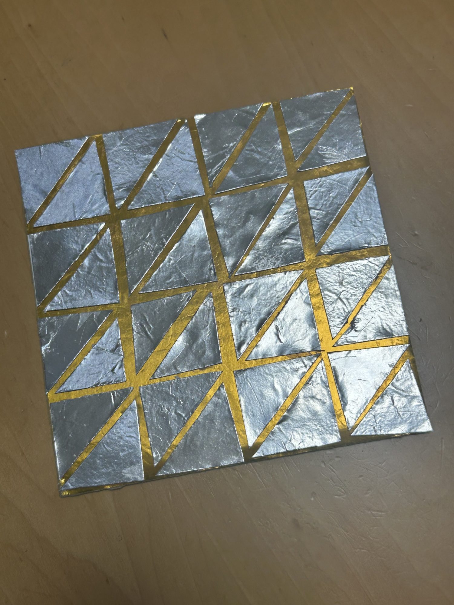 銀色の面に三角の形をきれいに並べて、