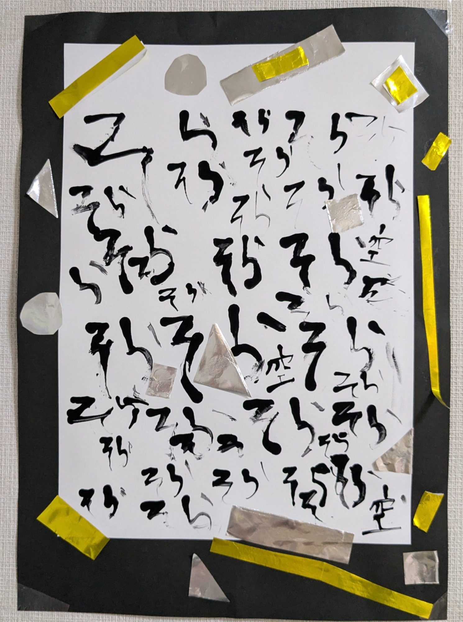 ところどころに貼られた銀色のかけらや黄色のラインも、光や星のように見えて、sumiremaruさんの“そら”のイメージがより豊かに広がっています⭐️🌙