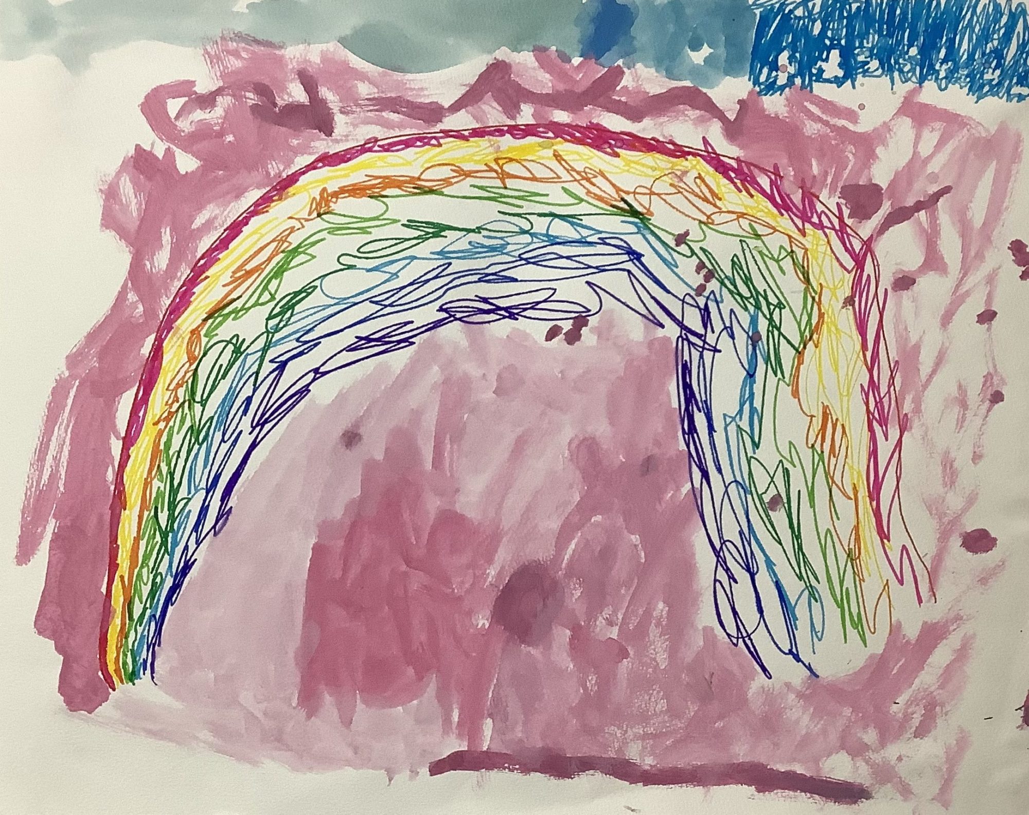 色がかさなったところや、にじのカーブが、ゆっくり空をわたっているみたいで、見ていて気持ちが明るくなりました。