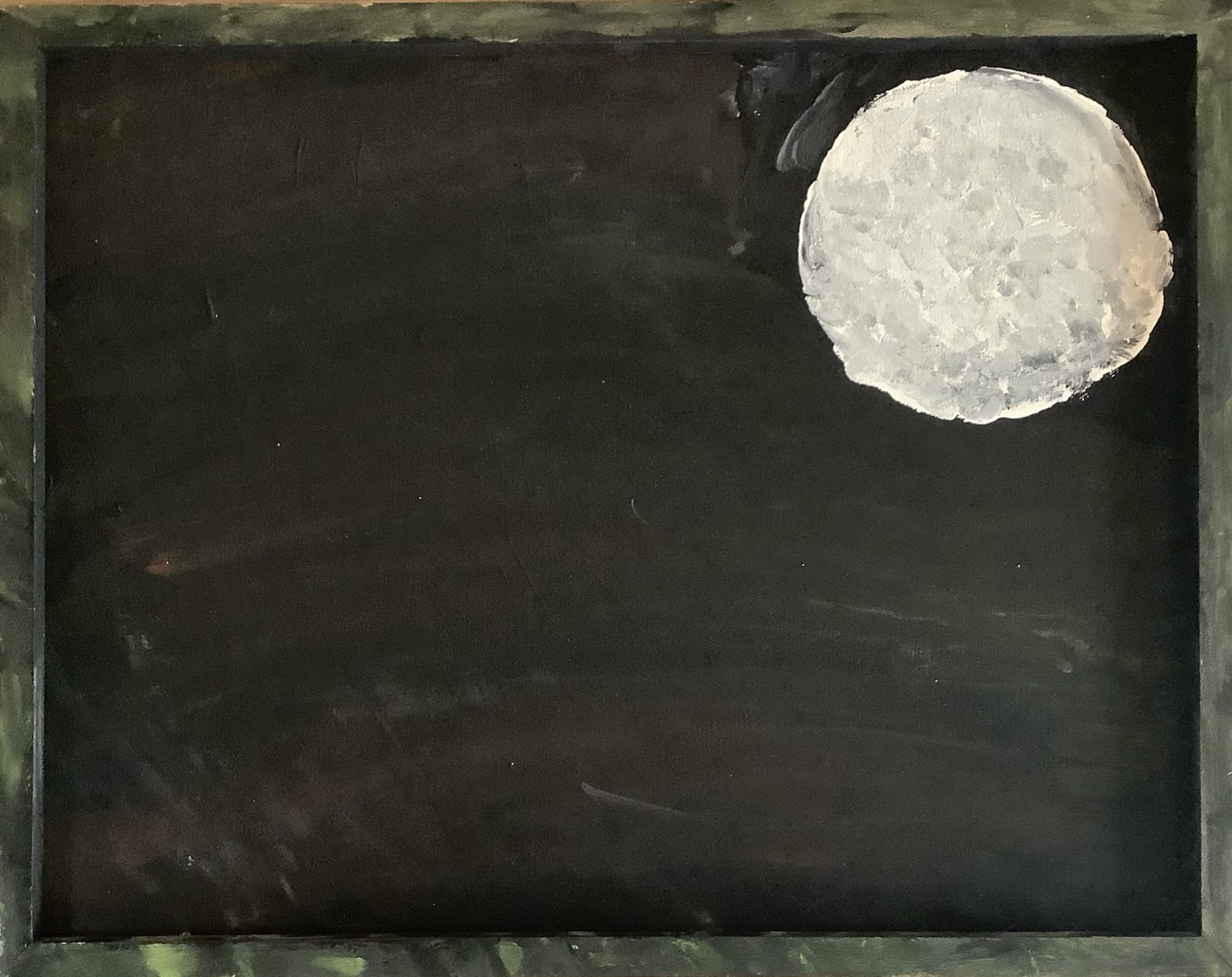 月の白も一色ではなく、にじむような重なりがあって、静かな光が闇に浮かんで見えます。