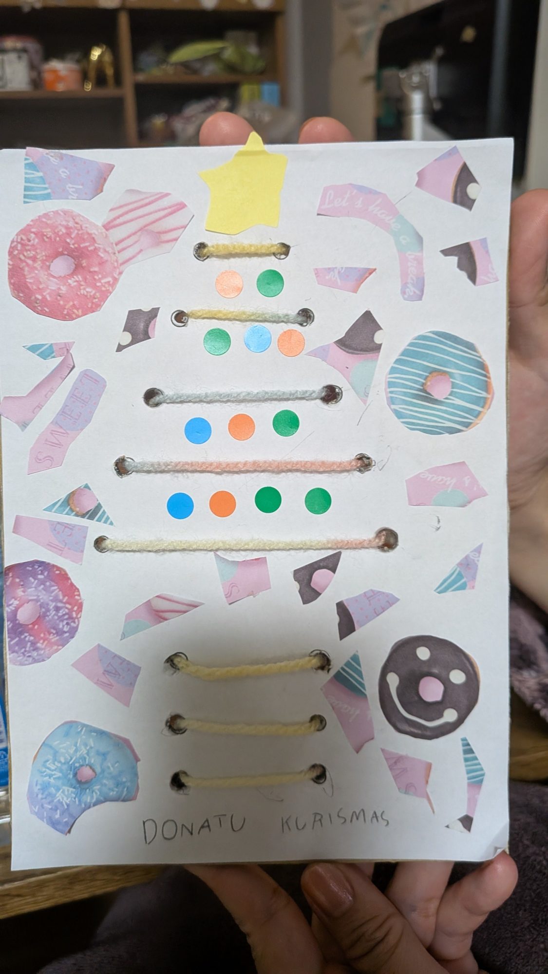 ドーナツの切り抜きも、いろんな形が散りばめられていて “お菓子の国のクリスマス” のような可愛い世界が広がっています。