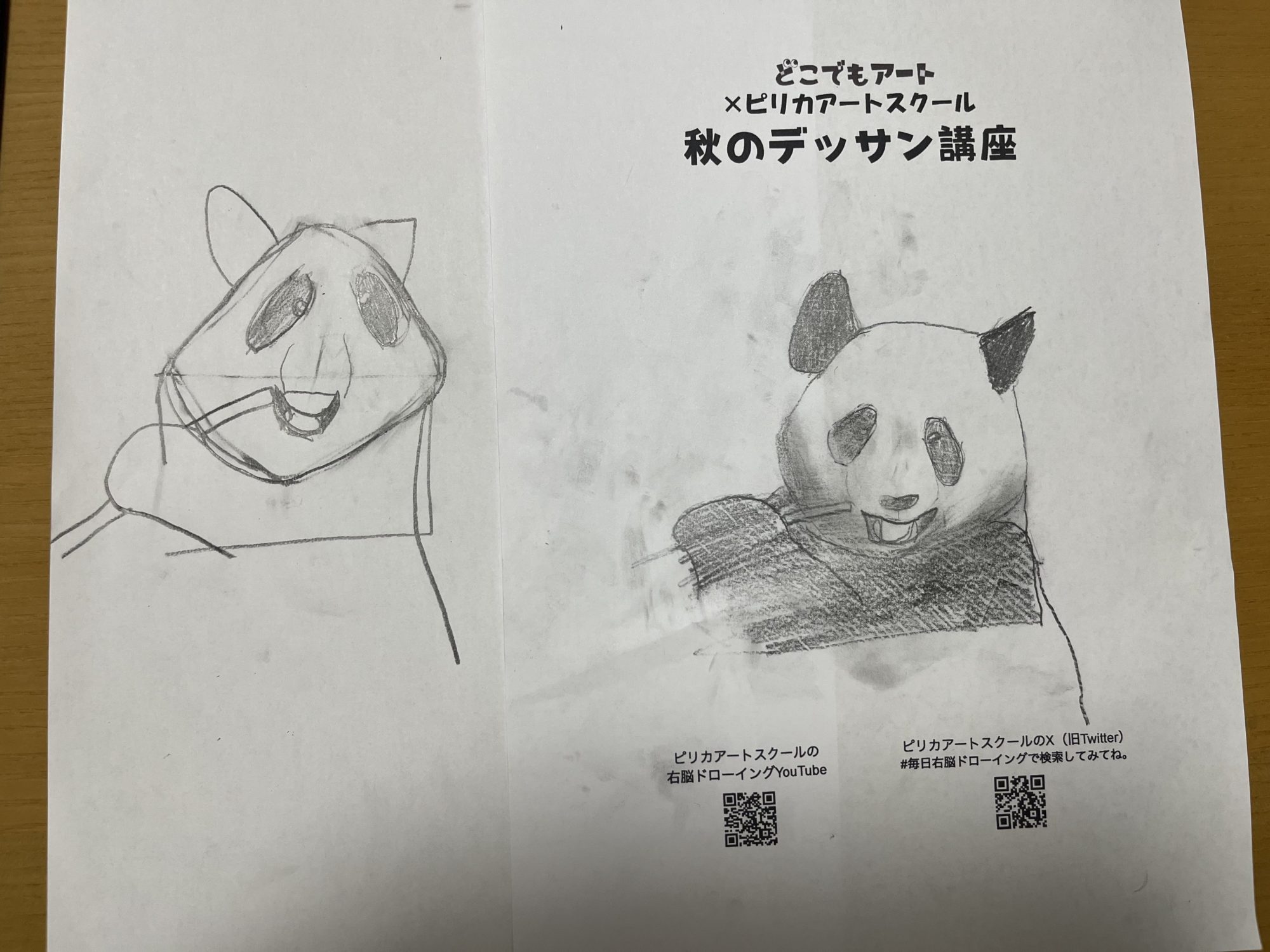 目のまわりの黒いところをしっかり見てぬっていて、パンダらしさをつかもうとする気持ちがよく伝わってきました。