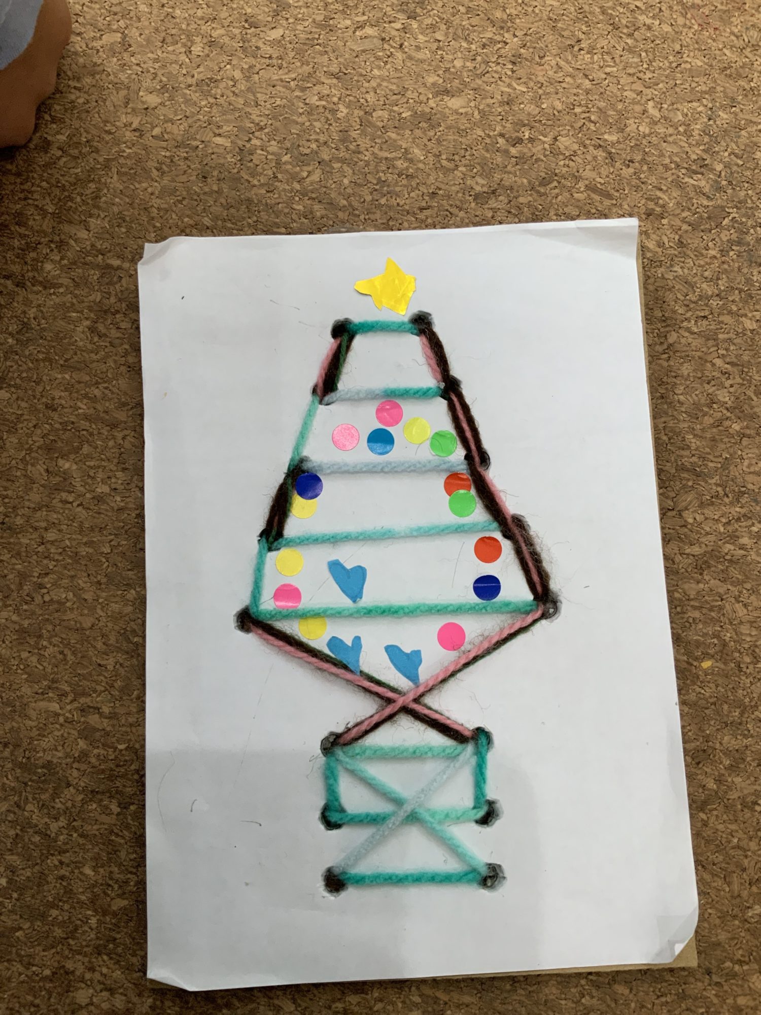 みゆさん、色とりどりのひもを通して作ったクリスマスツリー、とってもかわいらしいですね🎄✨