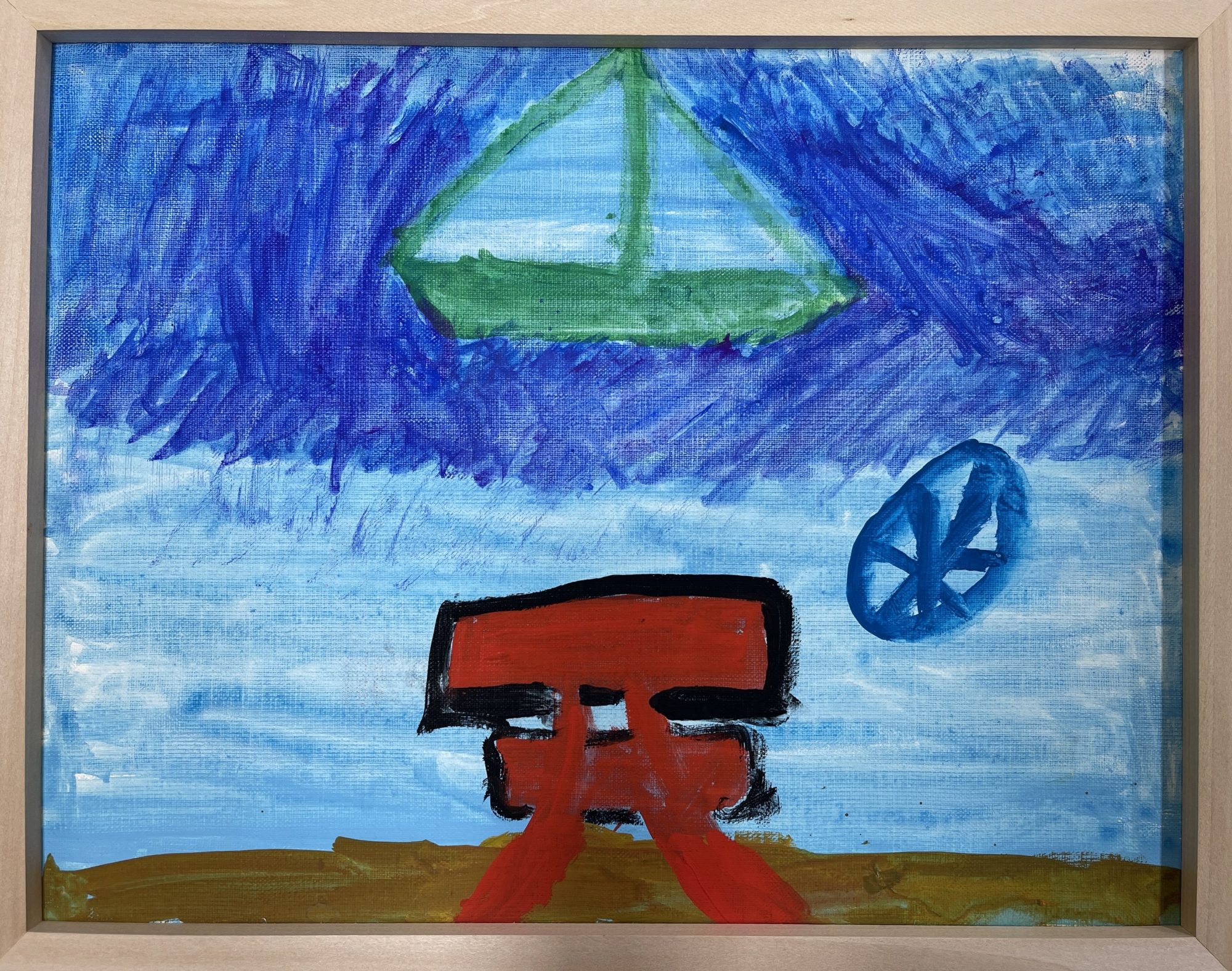 上の三角の形や、右に浮かぶ丸いかたちも、海の向こうの世界や、何かのしるしのようで、想像がふくらみますね🌊⛩️