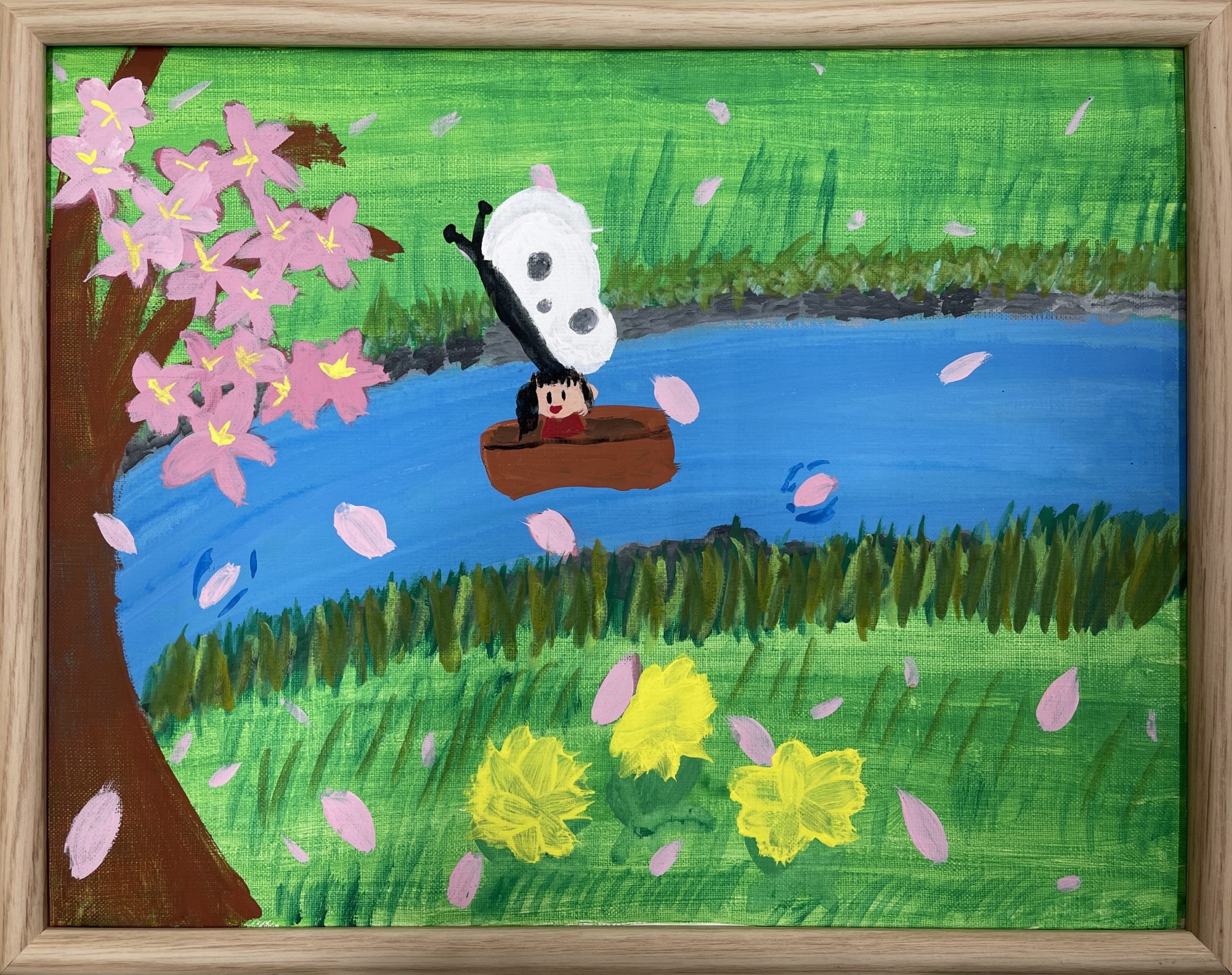 花びらの散り方や草のタッチから、「春がうれしい」という思いをのびのび描いているのが素敵です🌱