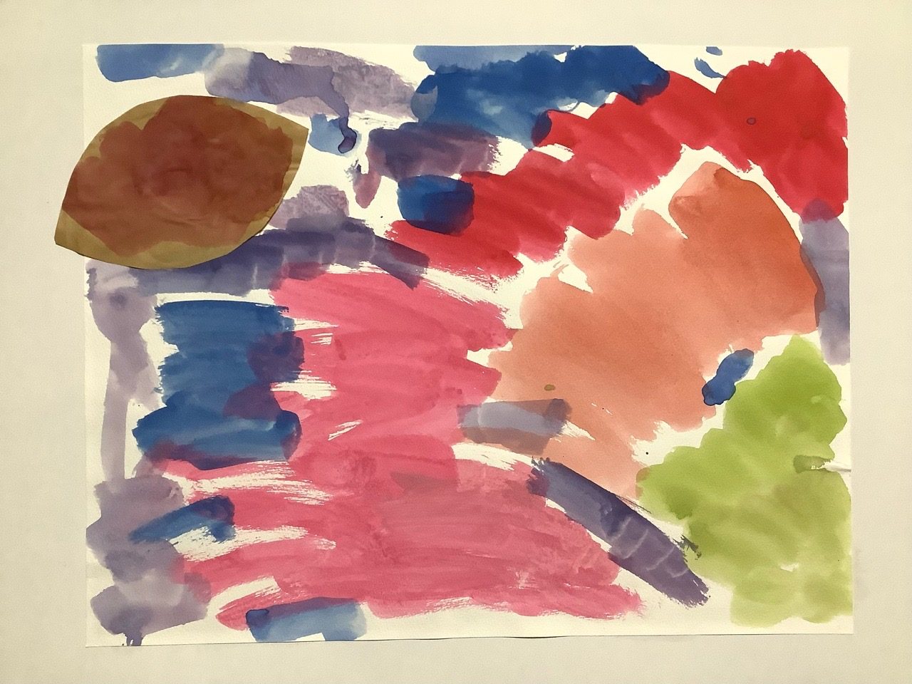 色が重なったところや、すっとぬられた線から、筆を動かす気持ちよさや、色をえらぶ楽しさが伝わってきます。